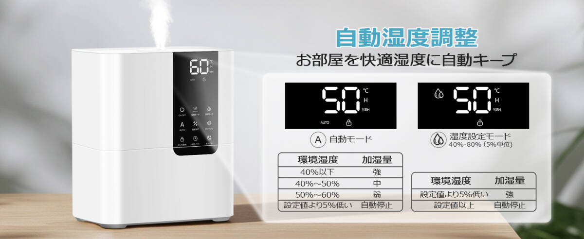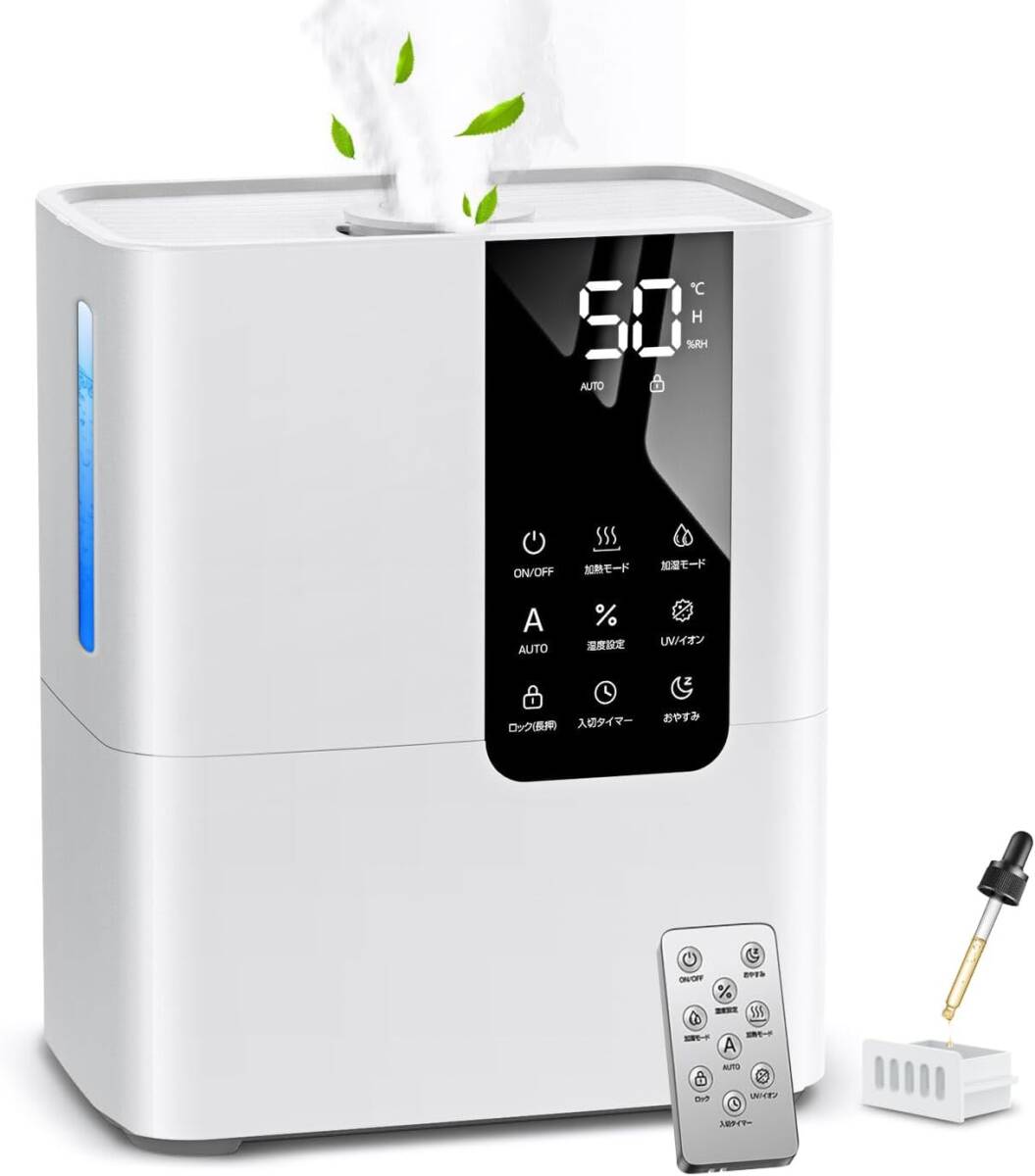 加湿器 大容量 8L AIスマート恒湿&多重除菌 超音波式 卓上 ハイブリッド式加湿器 加熱式 100℃高温除菌 マイナスイオン UV除菌