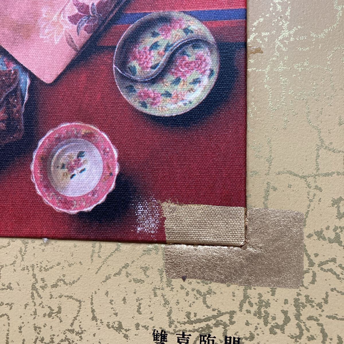 色鮮やかな和風のテーブルセッティングを描いた美しいアート作品。