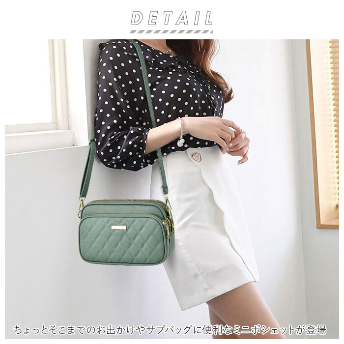 | 商品説明 | ・・ちょっとそこまでのお出かけやサブバッグに便利なミニポシェットが登場。 ・メインは2ルーム仕様だから小物を仕分けて入れられる◎スマホやミニウオレット、サングラスが入るサイズ。背面のメインルームにファスナーポケット装備。 ・大きなキルティングが可愛いフロントにはファスナーポケットも付いており、小さいながらも小物をしっかり整理できるアイテム。 ・ショルダーベルトを外せばクラッチバッグとしても使える2WAYタイプ。 |
