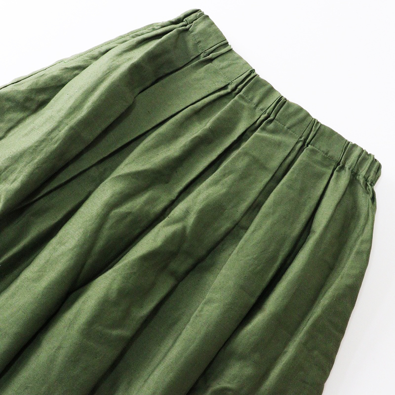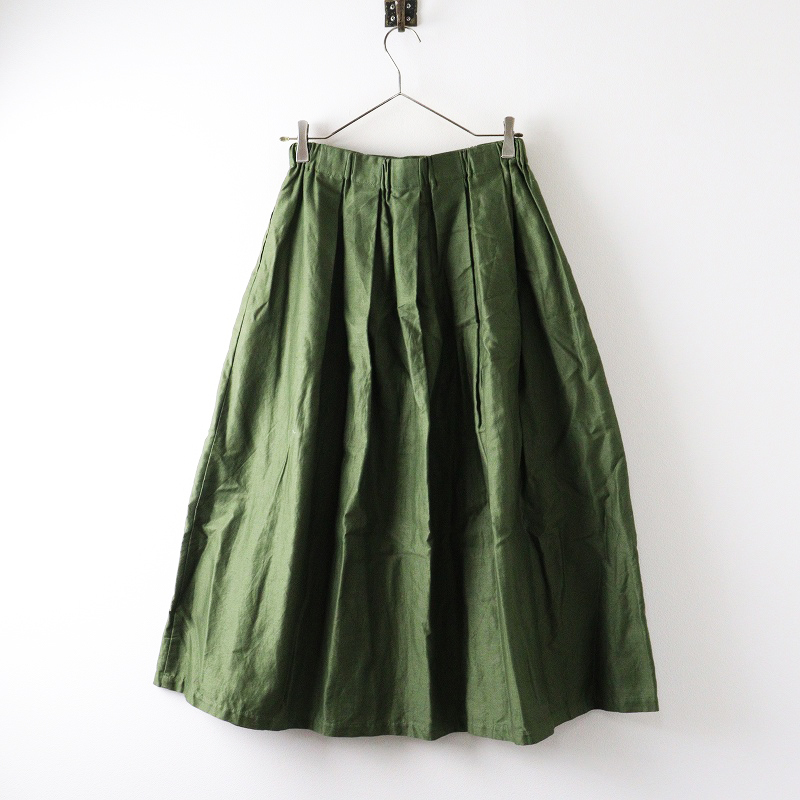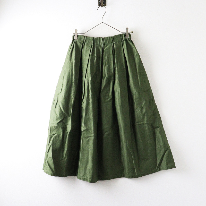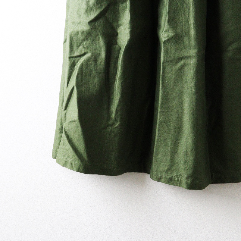 美品 かぐれ アーバンリサーチ kagure URBAN RESEARCH コットンリネンタックスカート F\カーキ フレア ゴム ロング【2400014674347】