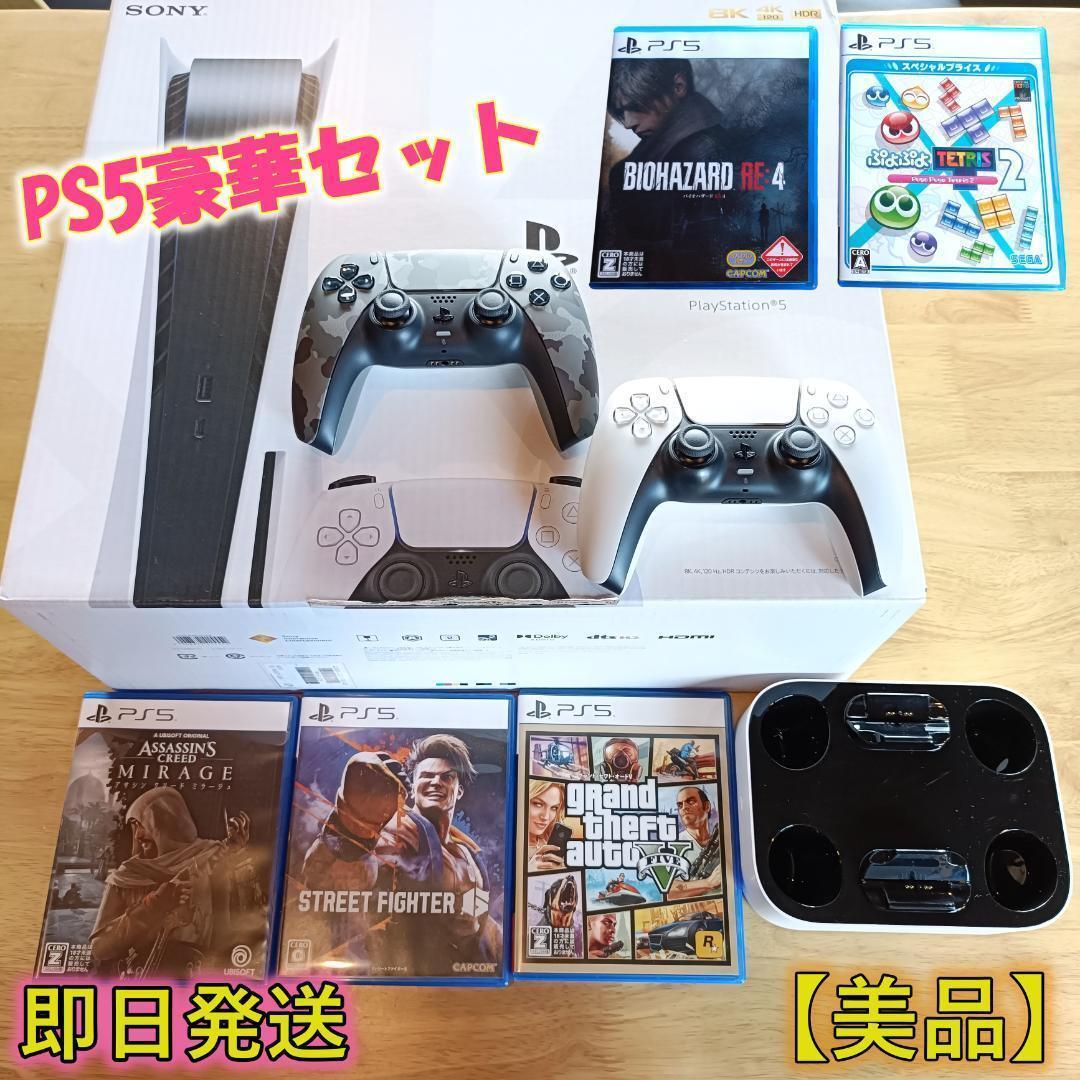 PS5 本体 825GB カモフラージュ純正コントローラー付き+人気ソフト5本+充電スタンド+持ち運びケース 美品 初期化済み