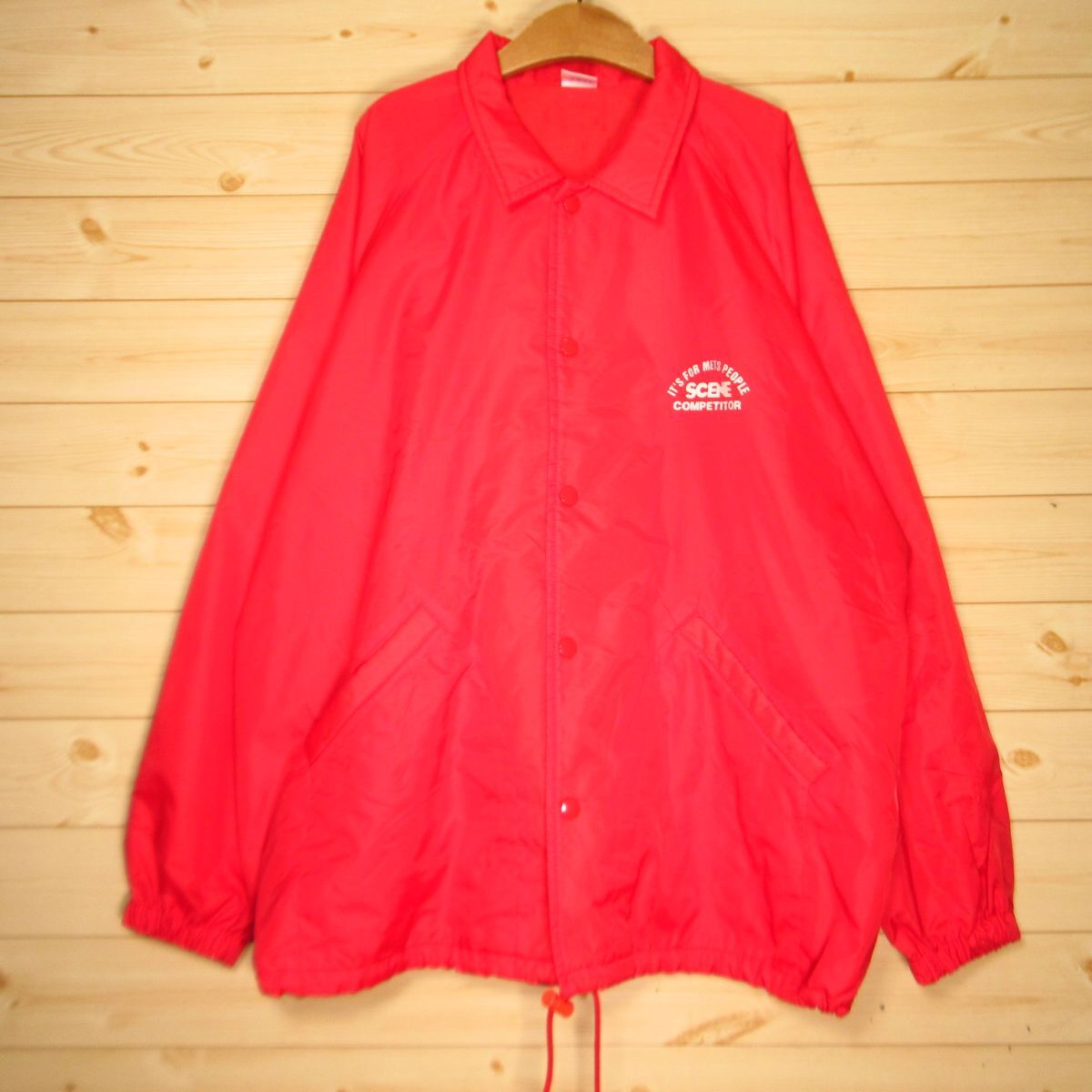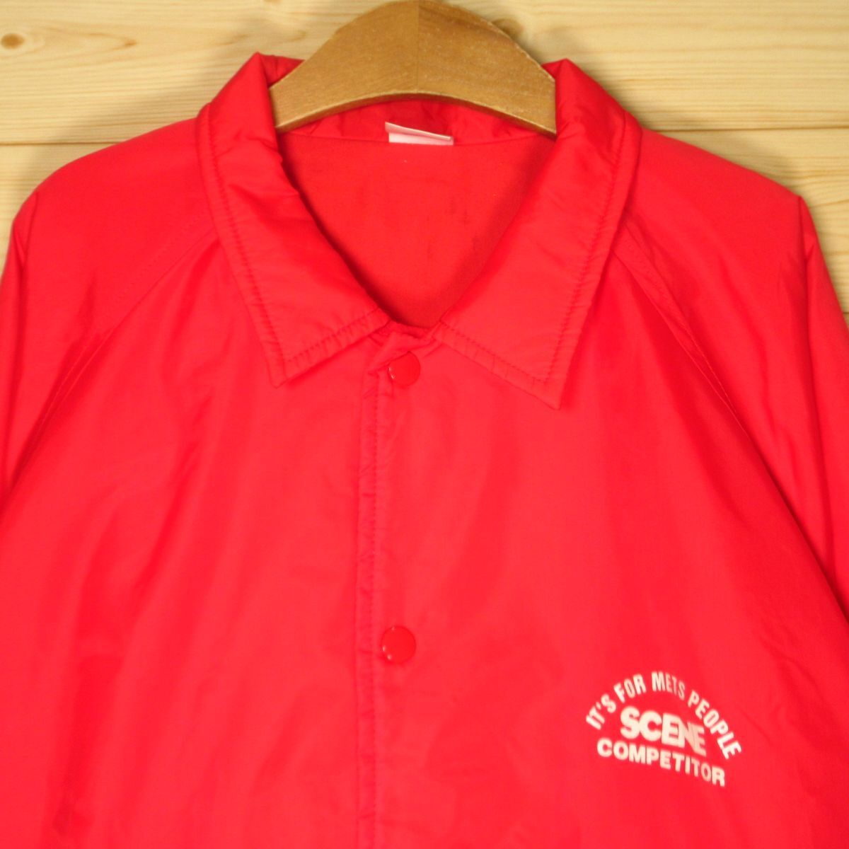 ◎希少 80s!SCENE シーン 厚手 コーチジャケット ジャンパー 胸プリント ビンテージ 当時物 80年代 メンズ 赤 Mサイズ◆AA5156