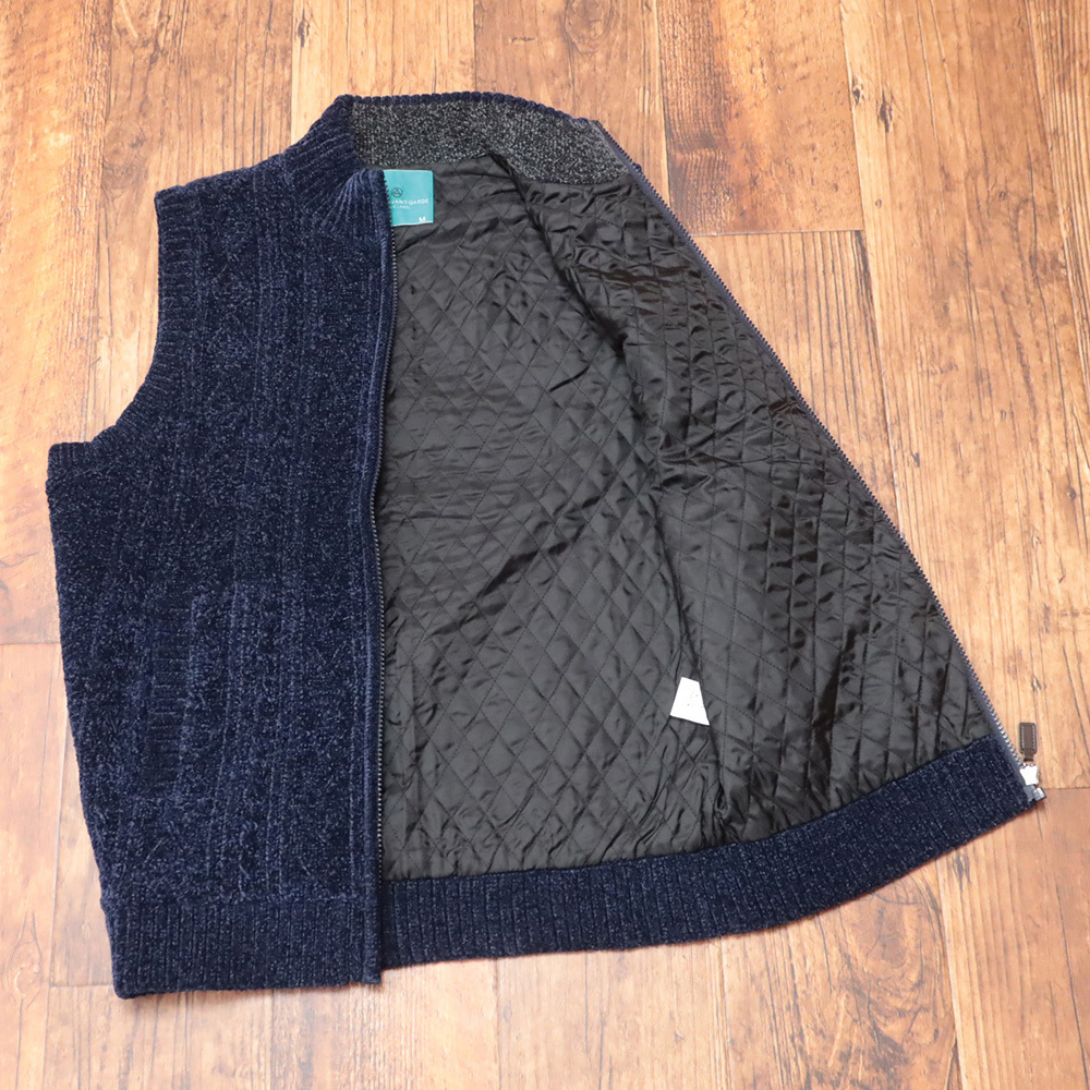 1円/秋冬/MIERU/Mサイズ/ジップベスト ハイネック モールニット キルティング裏地 防寒 ミエル 新品/紺/ネイビー/mb264/