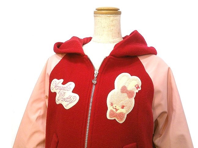 Angelic Prettyの大人気だった リリカルバニー ブルゾン です。胸元にはリリカルバニー ちゃんとロゴのワッペンがあしらわれています。フードにはかわいい耳付き!どこをとってもキュートなデザインです。お探しの方は是非!状態は若干の使用感程度。サイズは52cm、着丈53cm。F2648