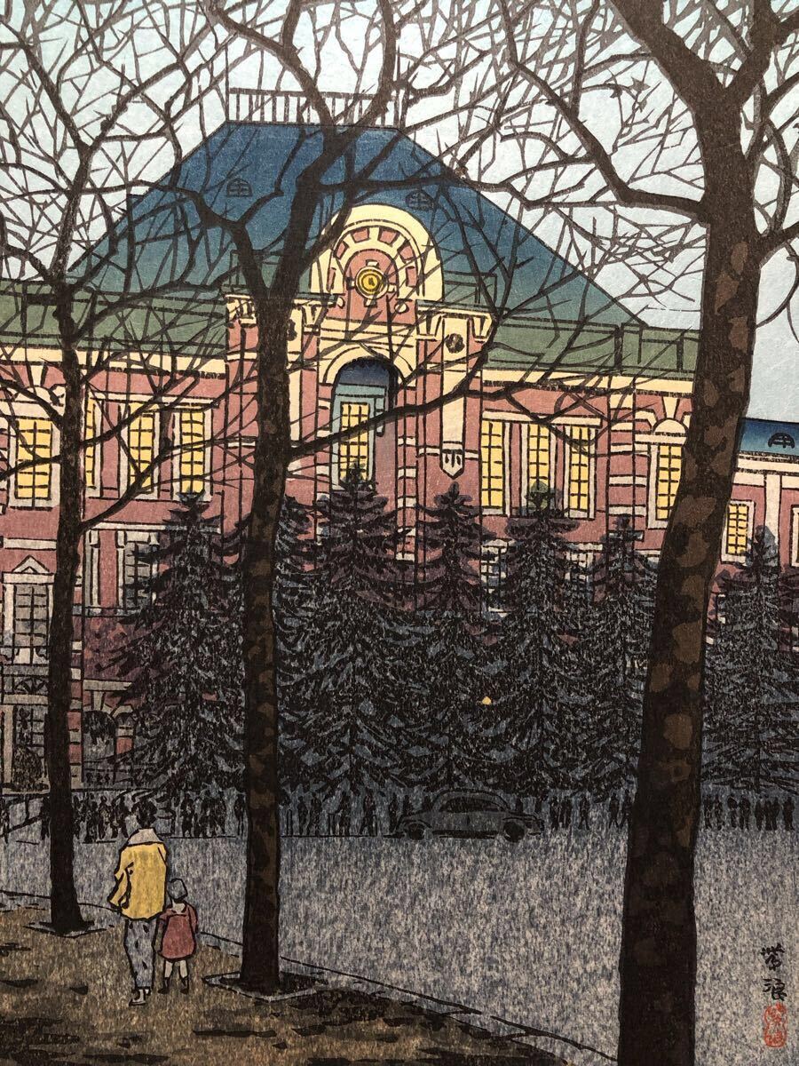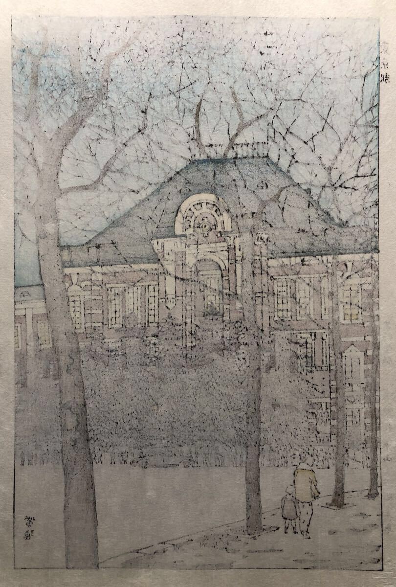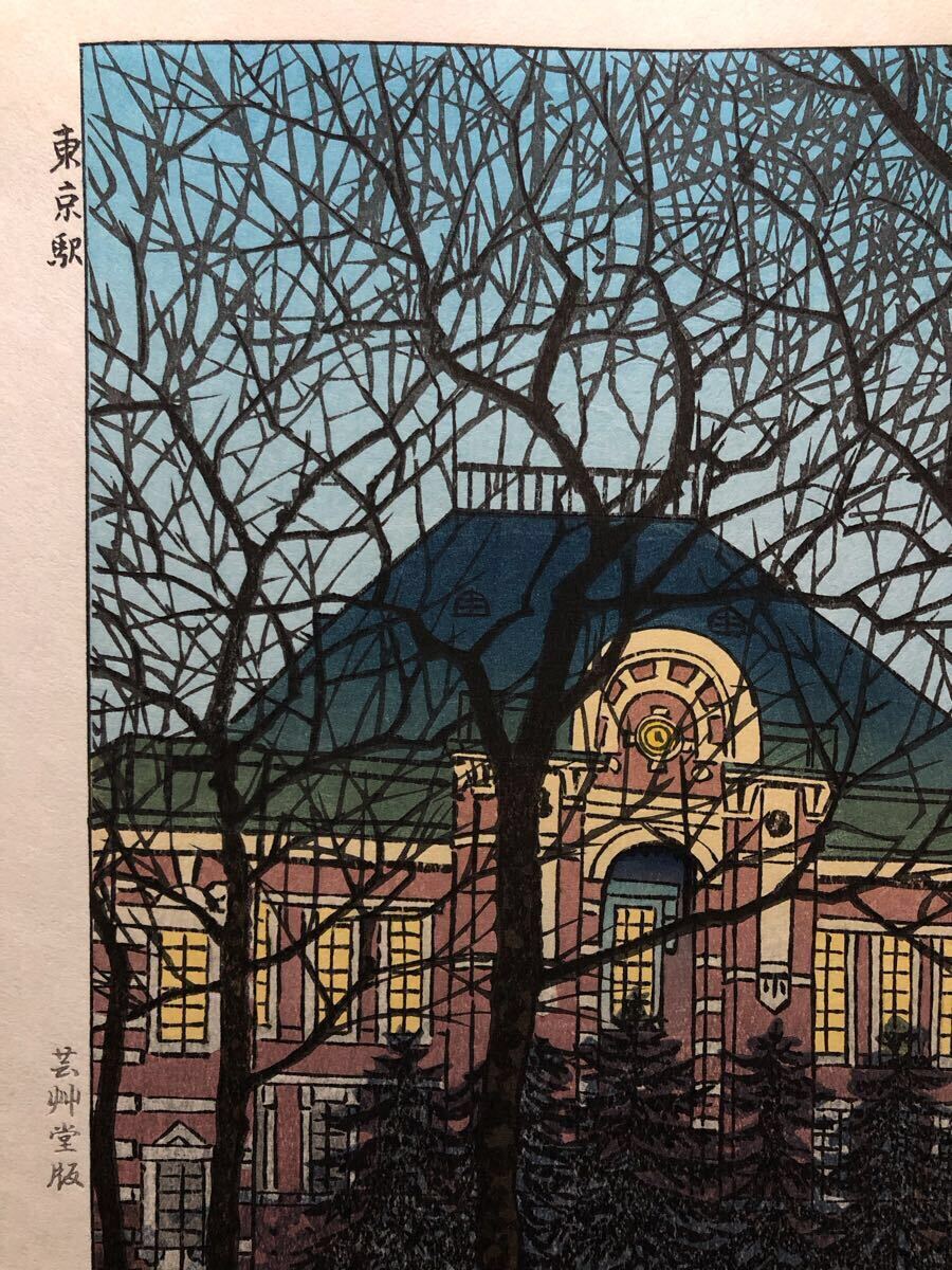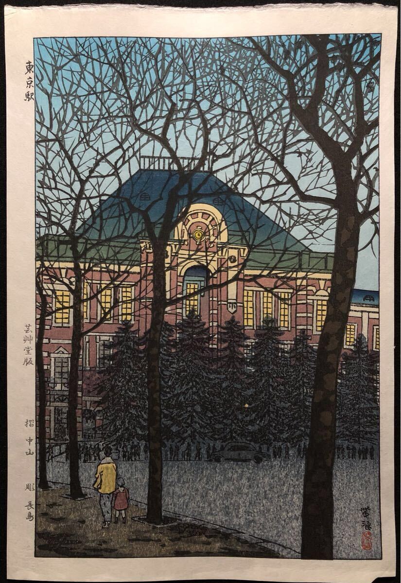 木版画 笠松紫浪【東京駅】芸艸堂版 大判 彫長島 摺中山 真作 ■ 浮世絵 新版画 創作版画 Kasamatsu Shiro 川瀬巴水 吉田博 小原古邨。