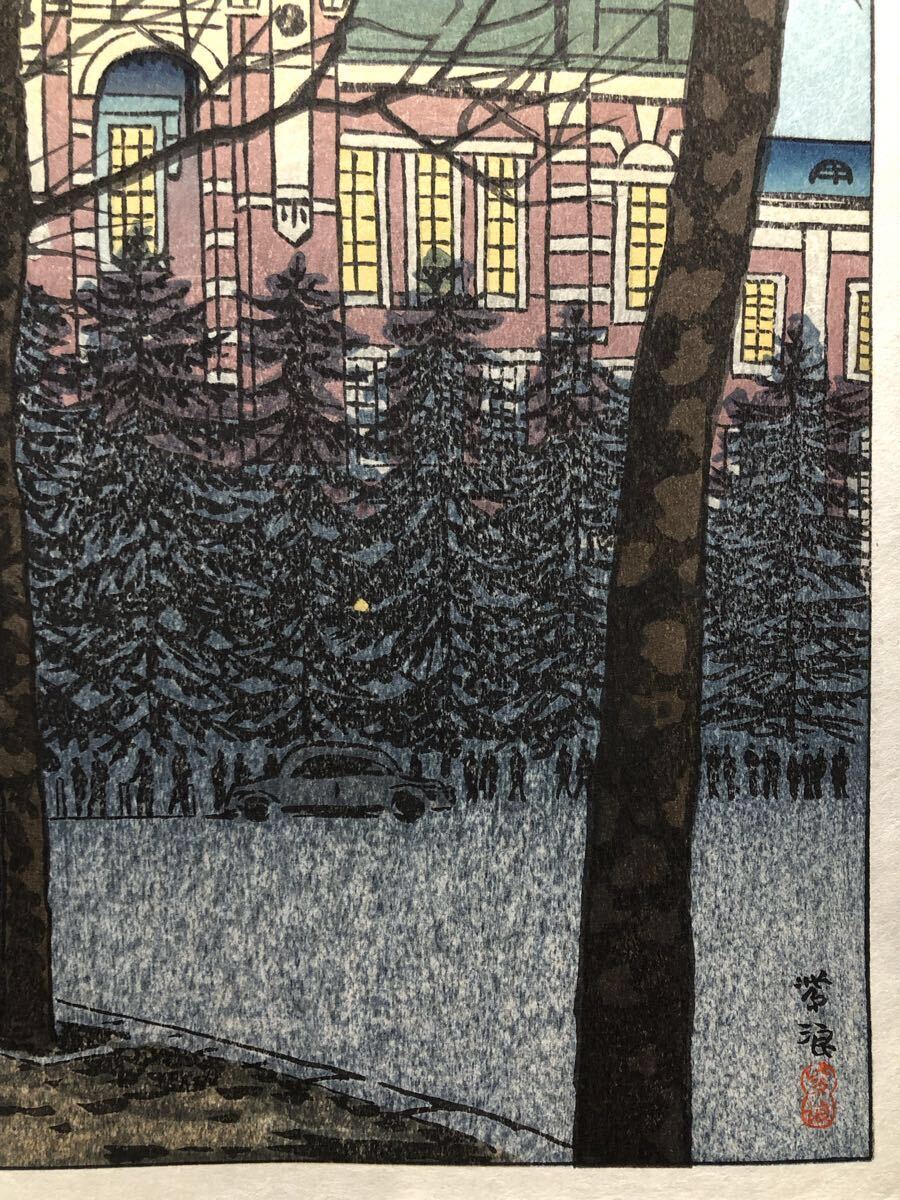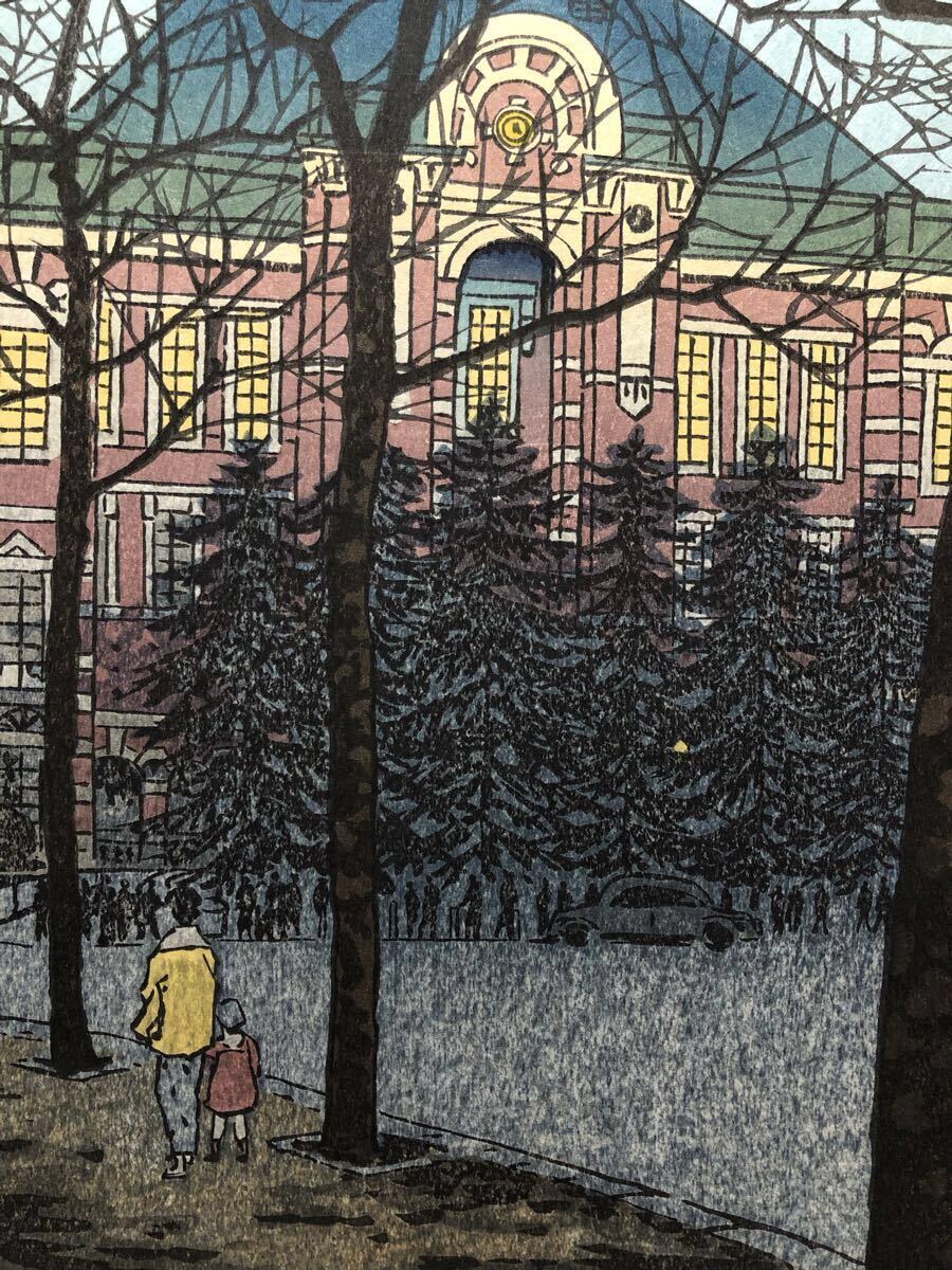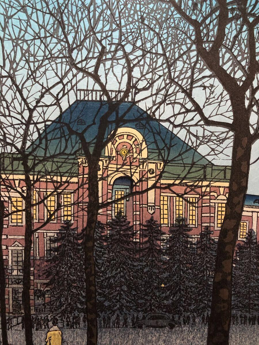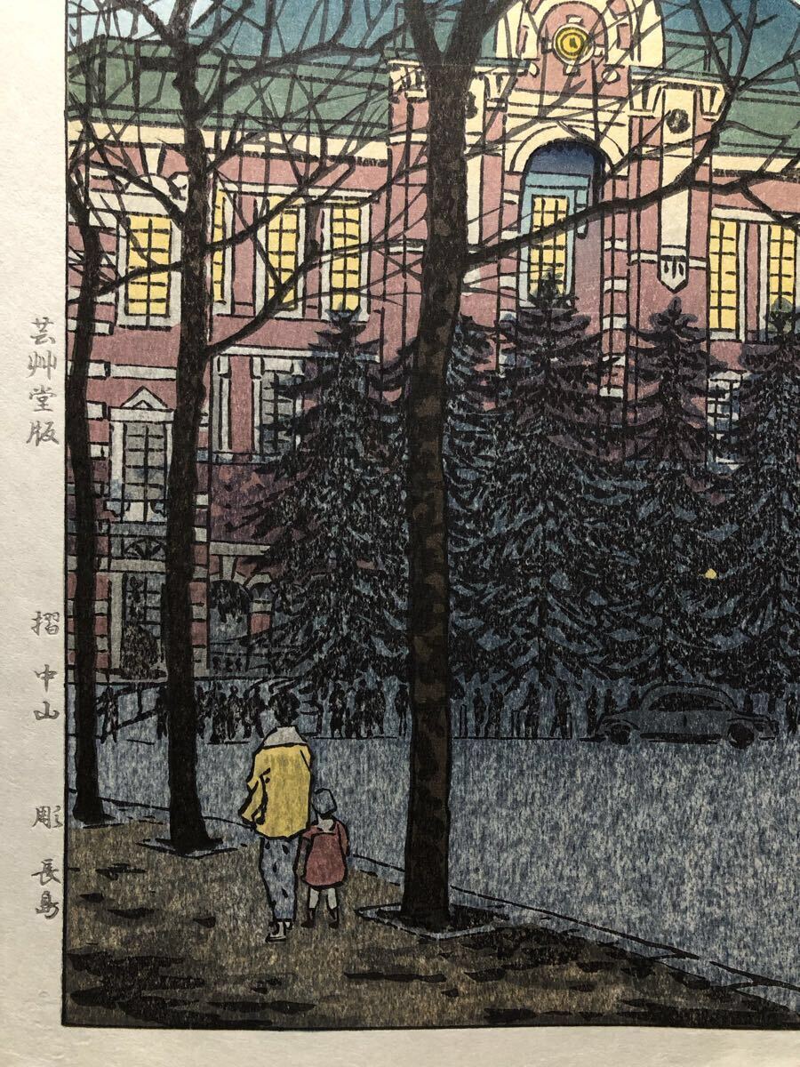 木版画 笠松紫浪【東京駅】芸艸堂版 大判 彫長島 摺中山 真作 ■ 浮世絵 新版画 創作版画 Kasamatsu Shiro 川瀬巴水 吉田博 小原古邨。