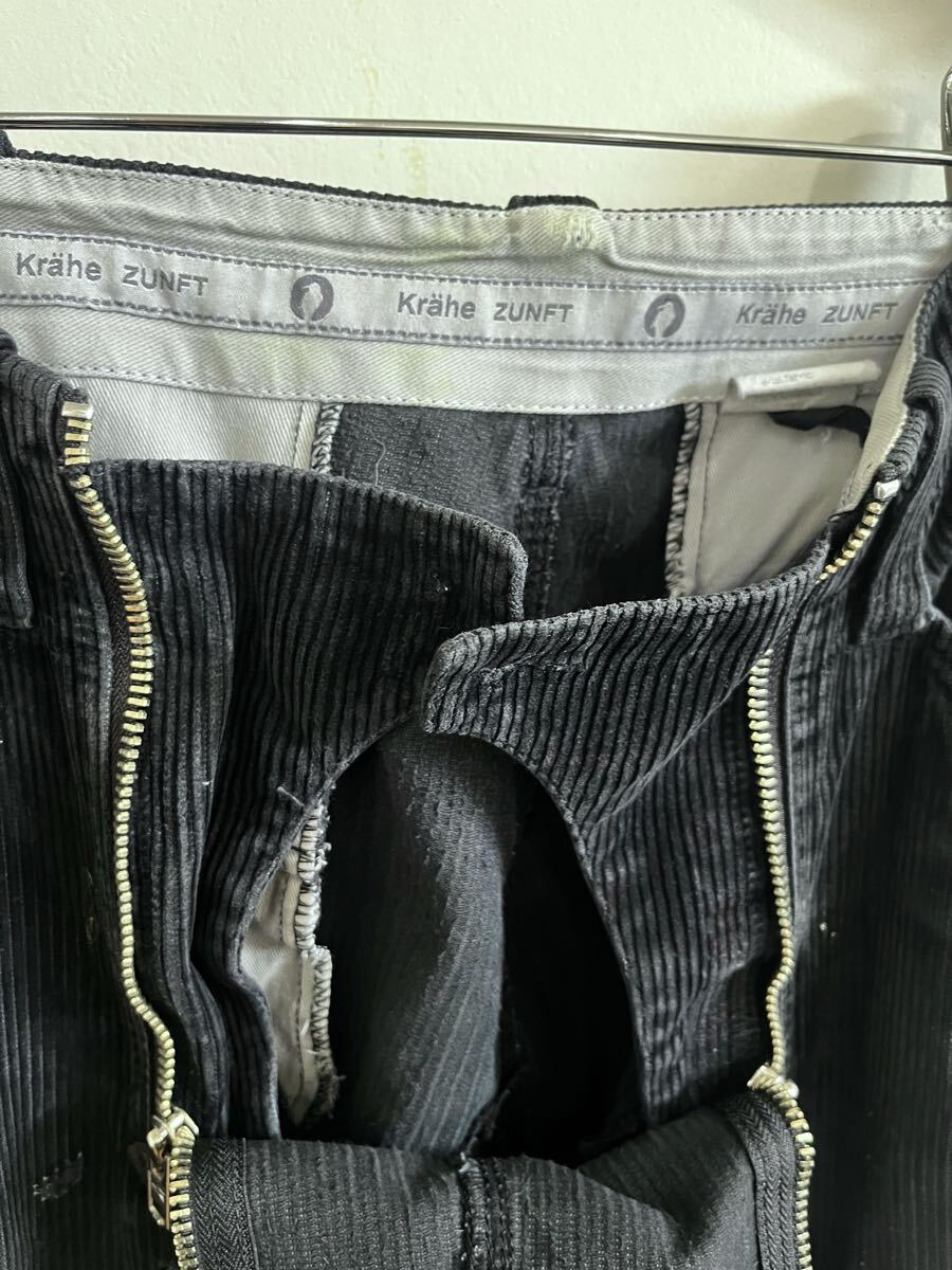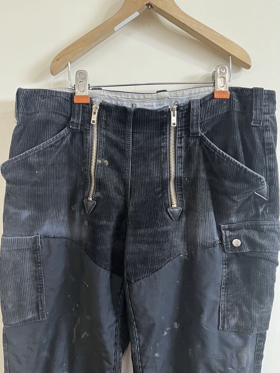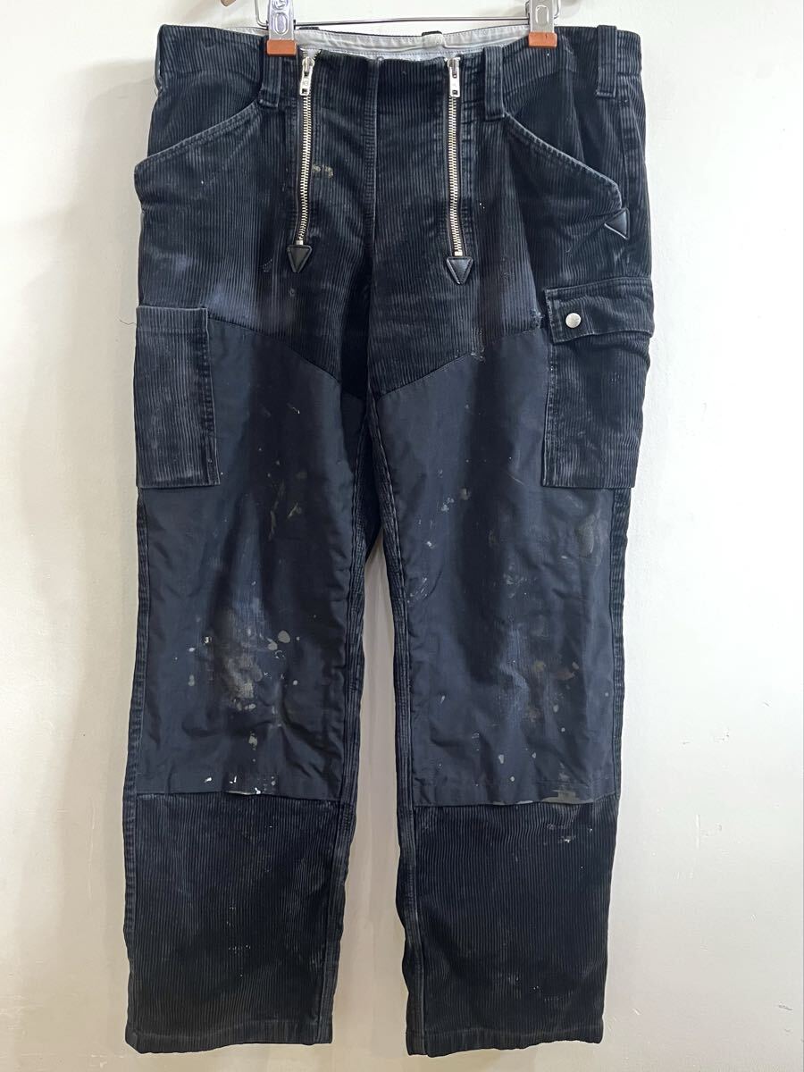 ドイツ古着ビンテージkraheブラックコーデュロイワークパンツ56ダブルジップユーロダメージ