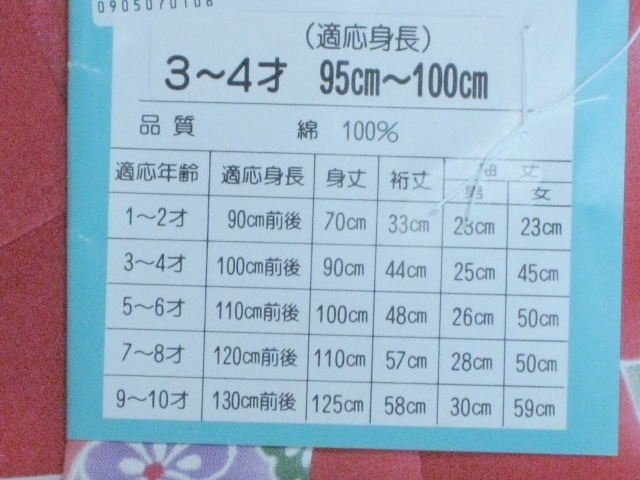 ★ 新品 ゆかた 浴衣 3~4才用 三ツ身 三つ身 100cm ★ 20