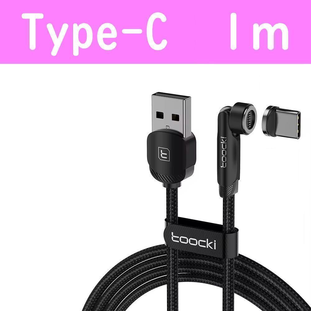 Type-C 1m黒色1本曲るマグネット磁石式USB充電通信ケーブル タイプC