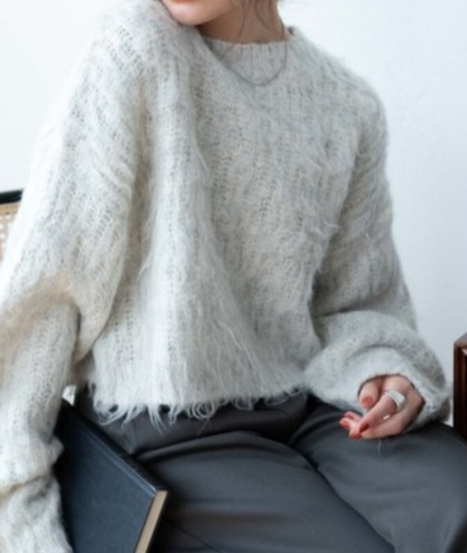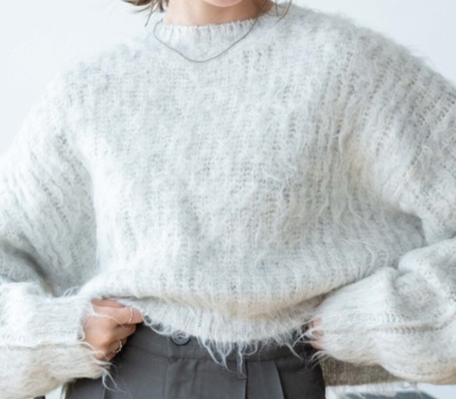 肌触りの良い柔らか素材のショート丈シャギーニットです