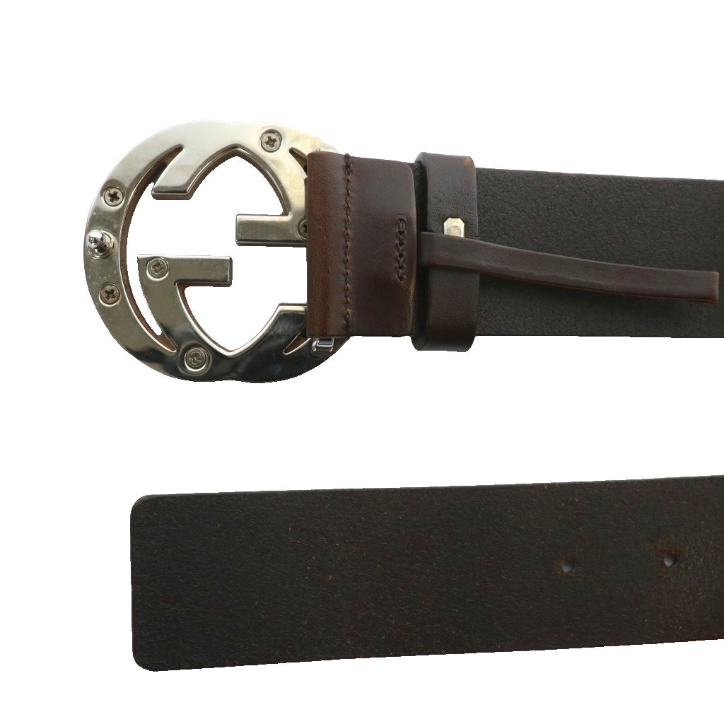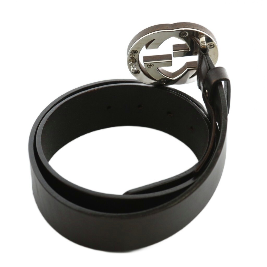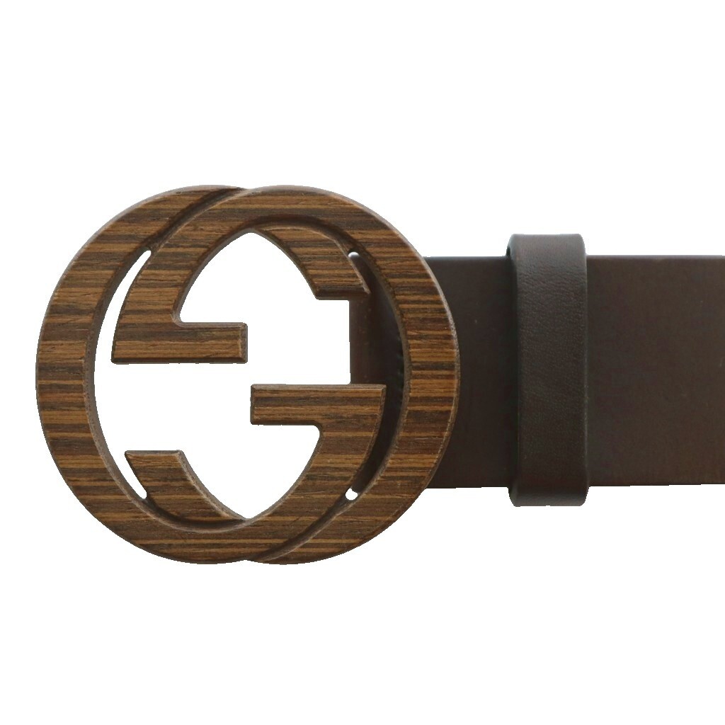 グッチ GUCCI ベルト ハトメ レザー インターロッキング GGバックル 木目 ウッド 85/31 黒 ブラック 268235・525040