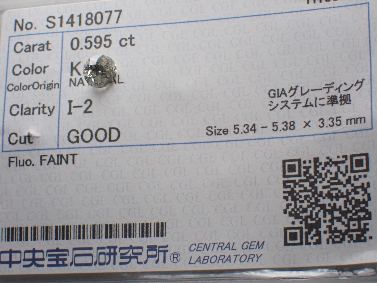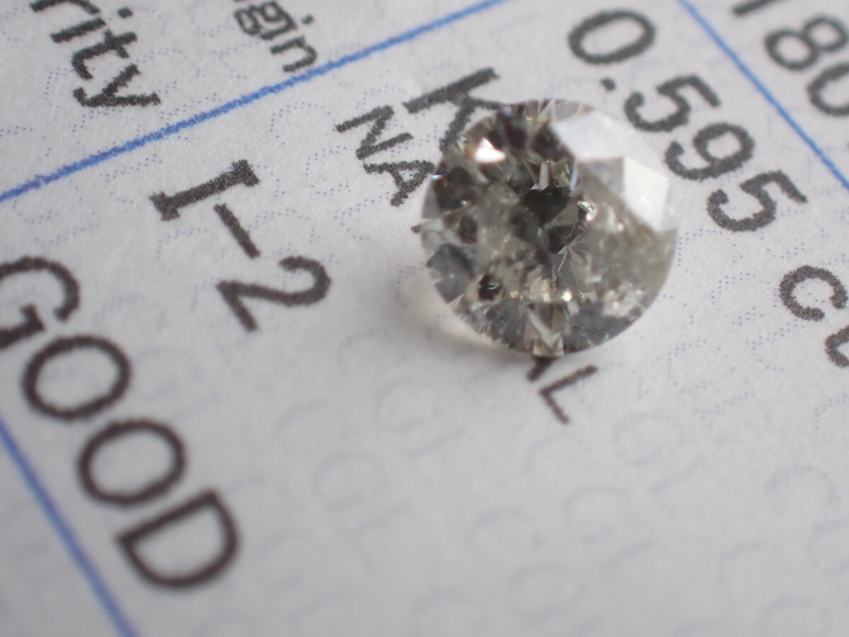 1円~!D0.595ct K I2 GOOD 天然ダイヤモンドルース 裸石 NATURAL DIAMOND sorting 中央宝石研究所ソーティング付き