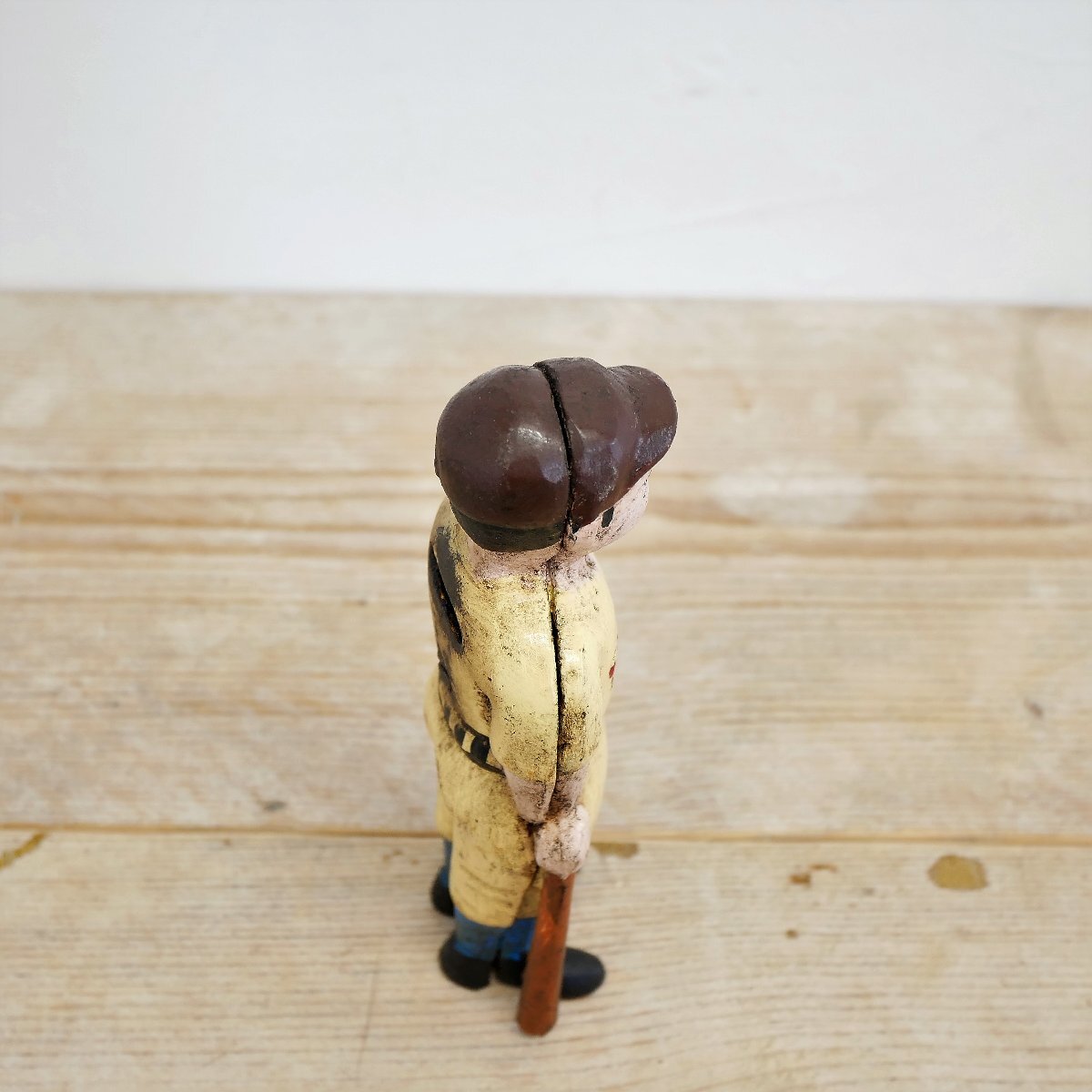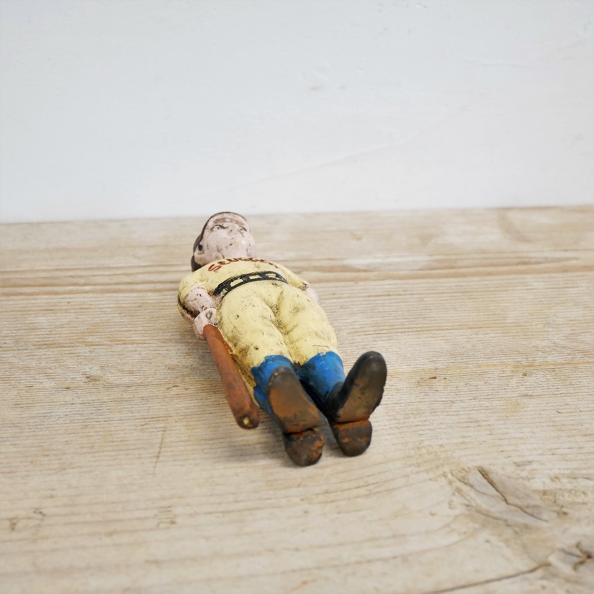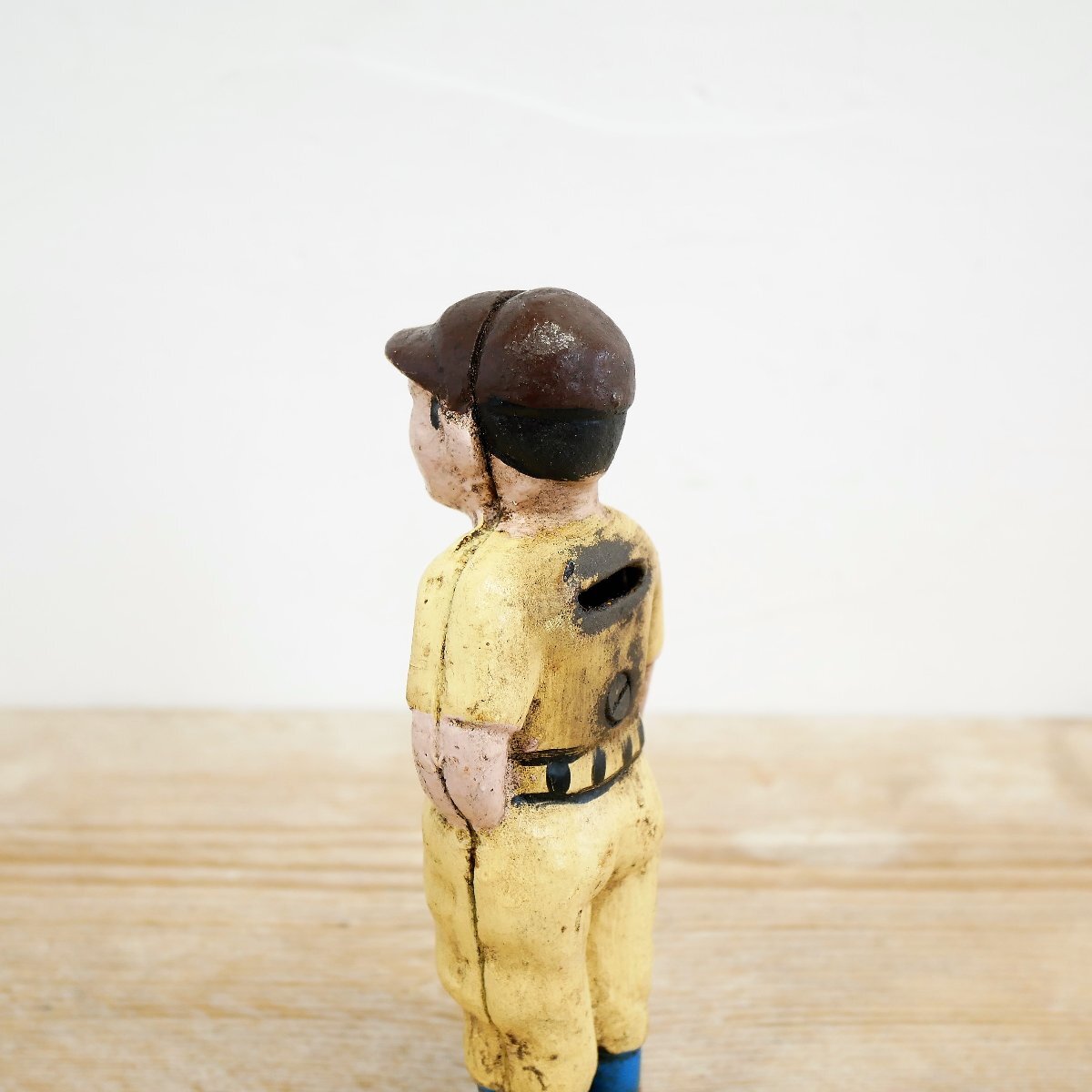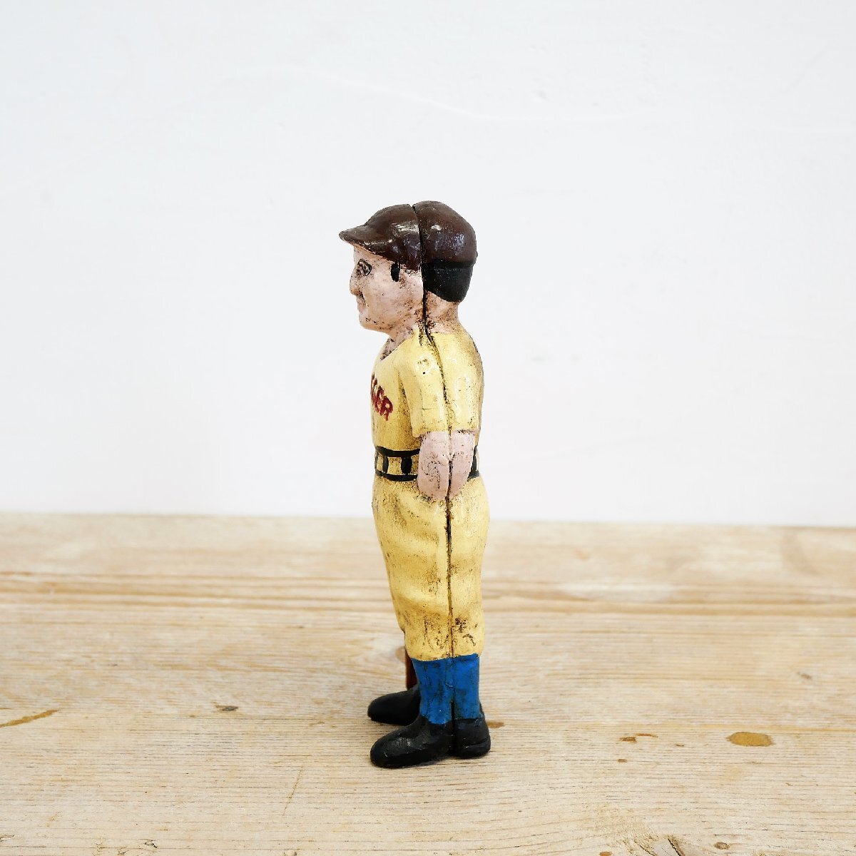 | 商品説明 explanation | 野球選手を模した鋳物製の貯金箱です。 表情やフォルムなど、何とも言い表せない雰囲気があります。 材質:鉄の鋳物(キャストアイロン) ※年代不明 1セントコインは入りますが、日本の硬貨は入りません。 お洒落なアイテムを、インテリアのアクセントにいかがでしょうか。 |