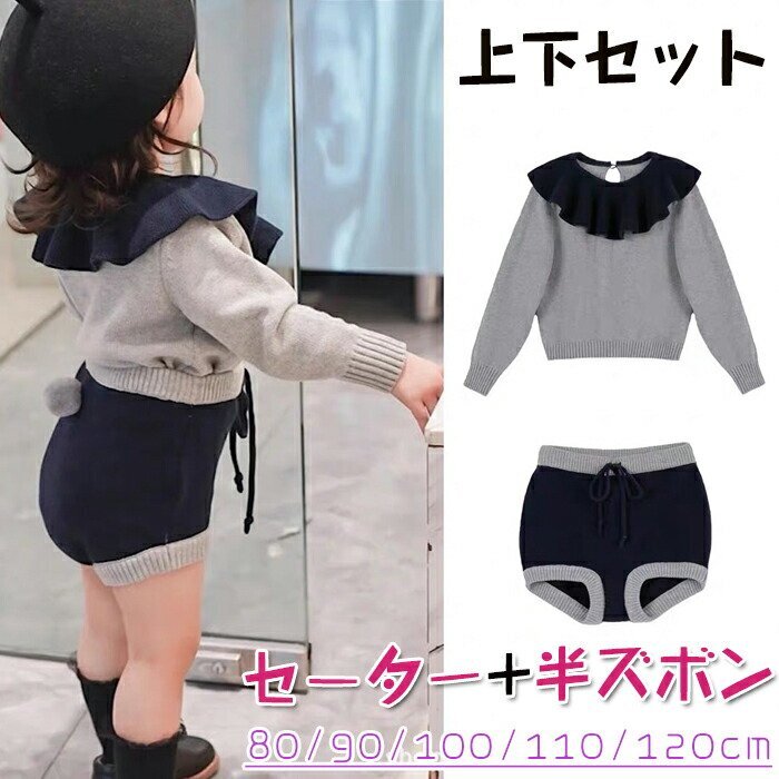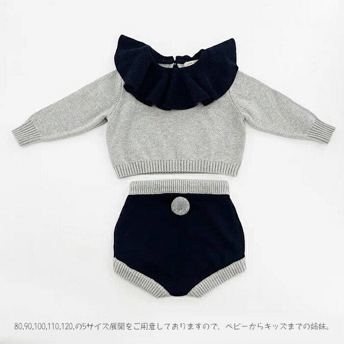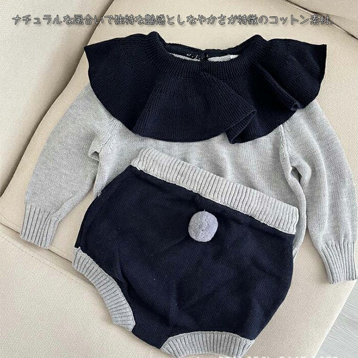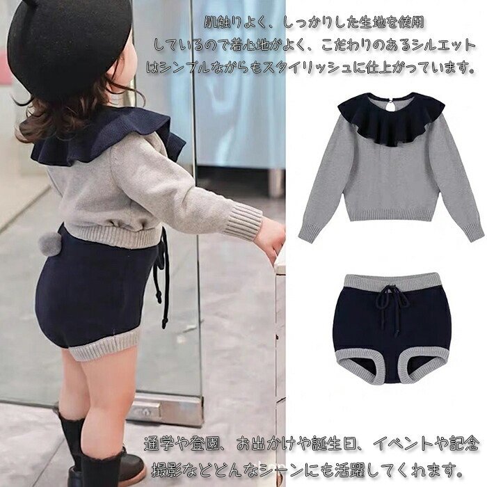 子供服 ニットセット アップ ベビー スーツ 女の子 ベビー (ニットセーター+ ニットパンツ) 女の子 長袖 上下セット☆80-120選択/1点