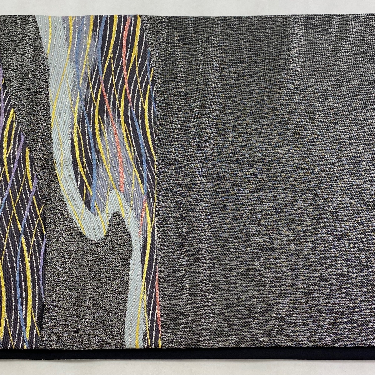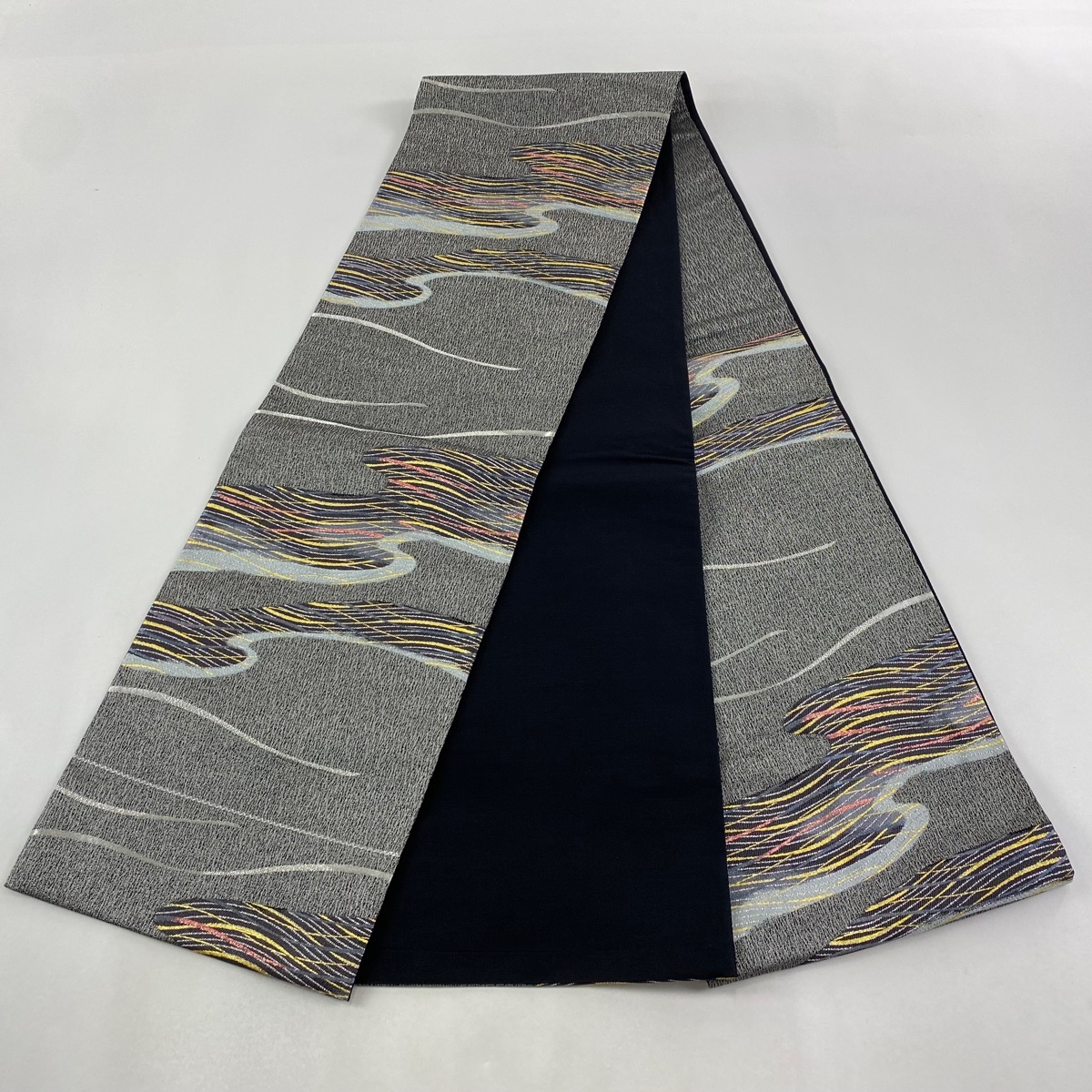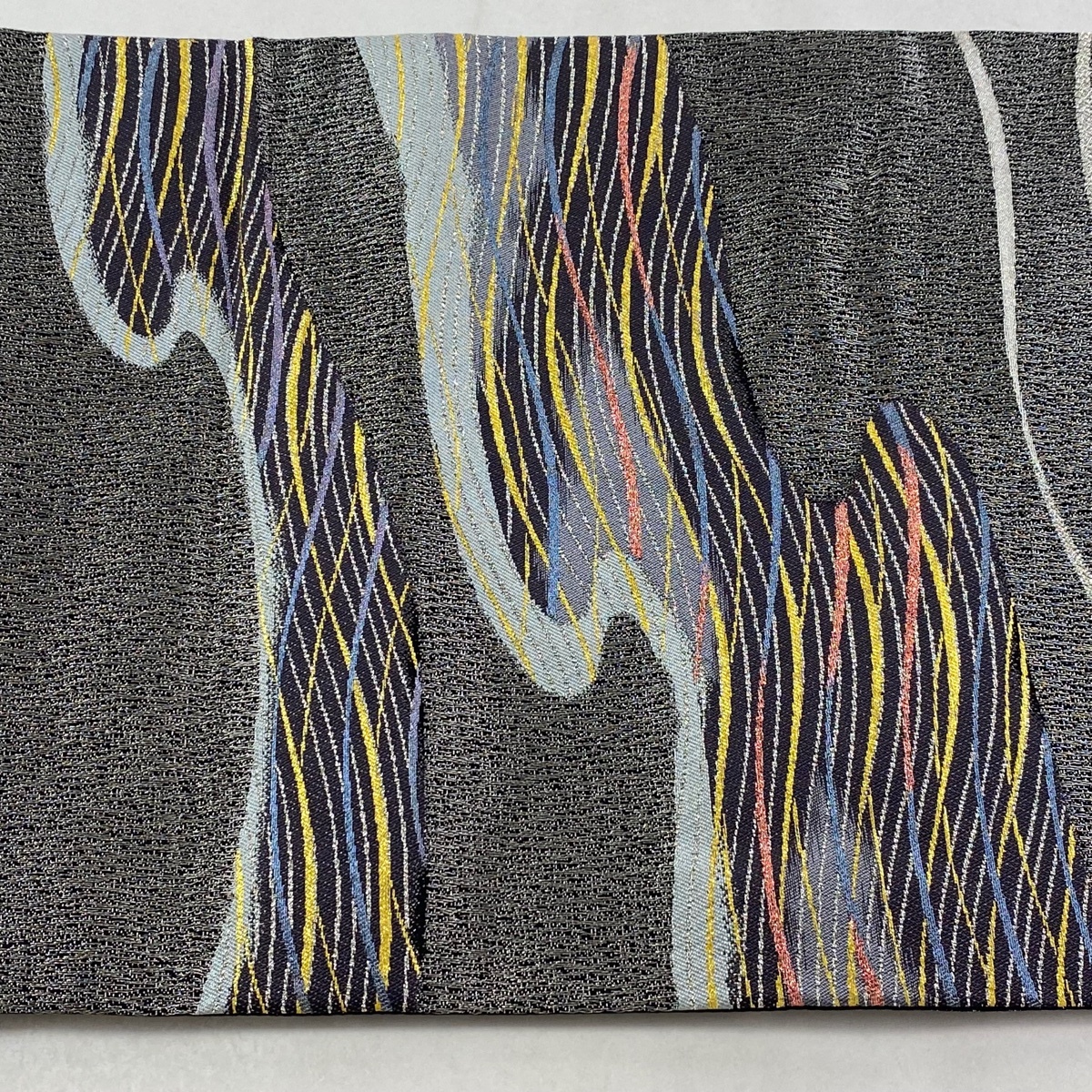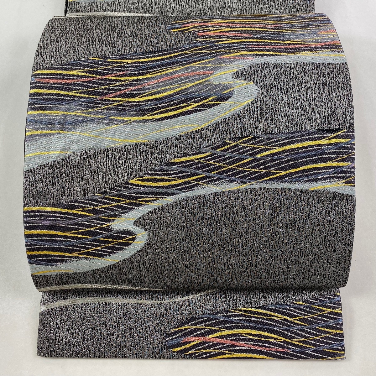 | 袋帯 秀品 流水 幾何学模様 箔 黒灰 六通 正絹 【中古】 |