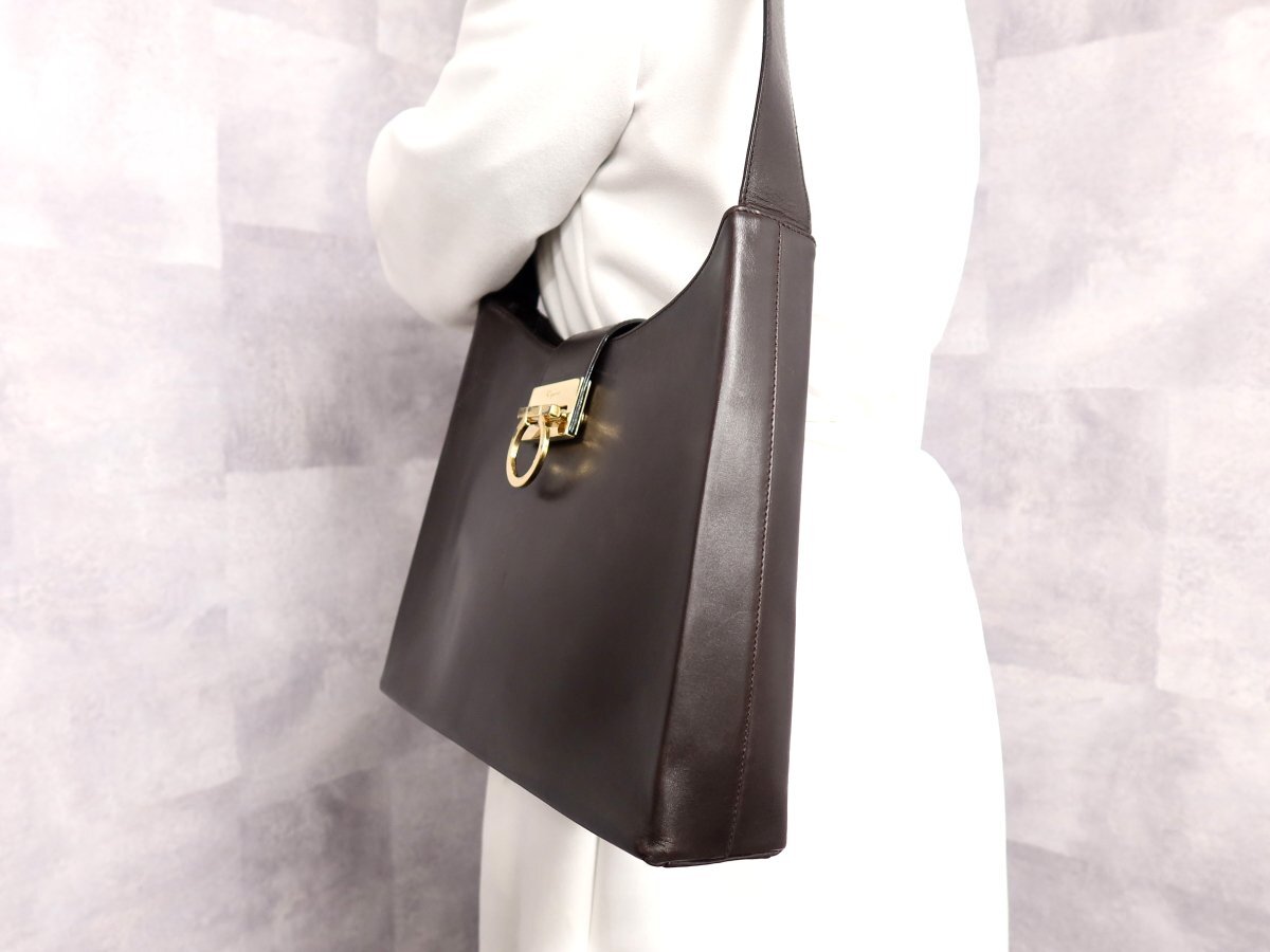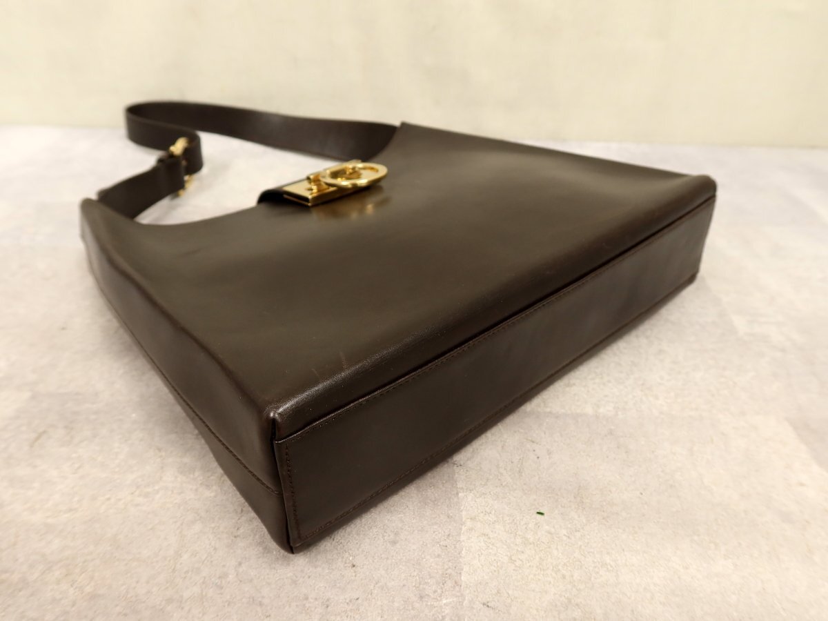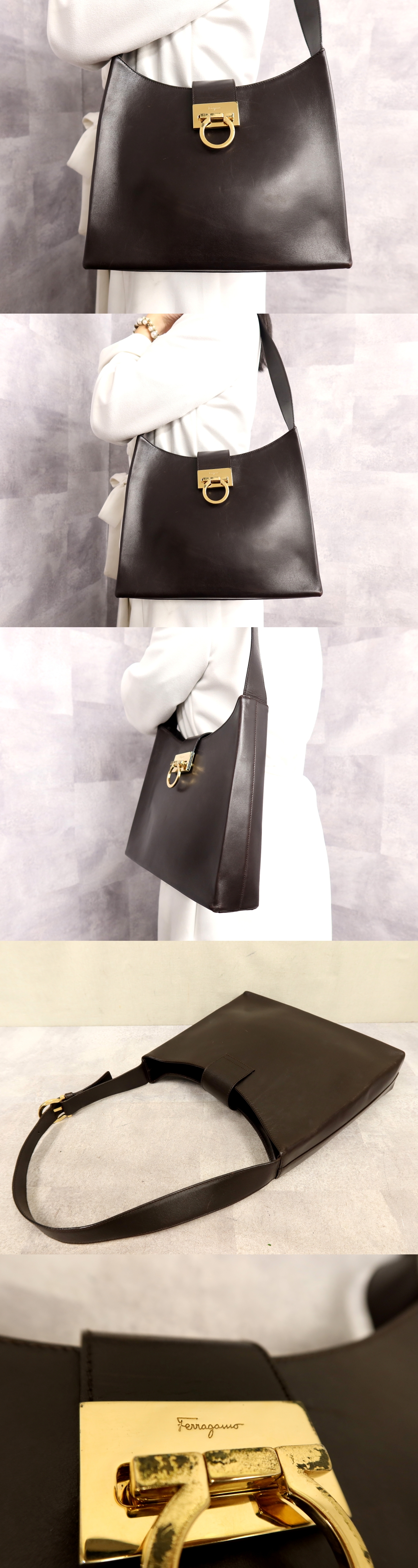 ●超美品●Salvatore Ferragamo フェラガモ●ガンチーニ●カーフ レザー 本革●ショルダー バッグ●ダークブラウン●G金具●B5●Js62454