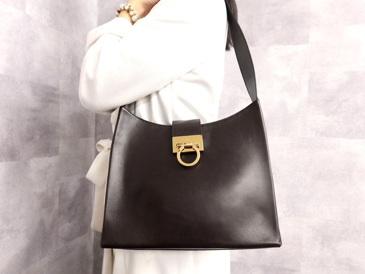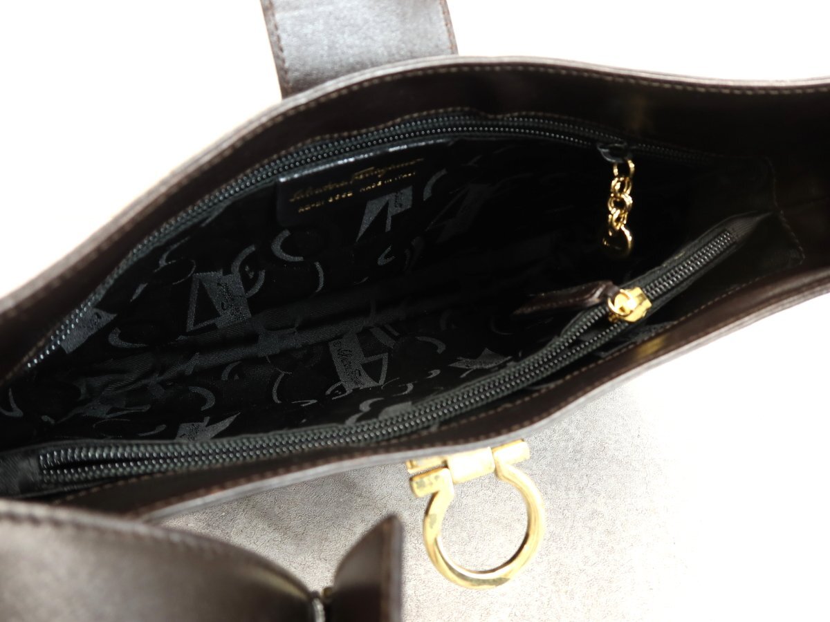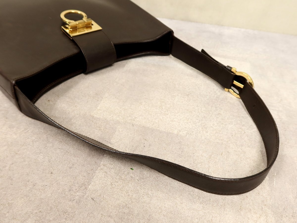 ●超美品●Salvatore Ferragamo フェラガモ●ガンチーニ●カーフ レザー 本革●ショルダー バッグ●ダークブラウン●G金具●B5●Js62454