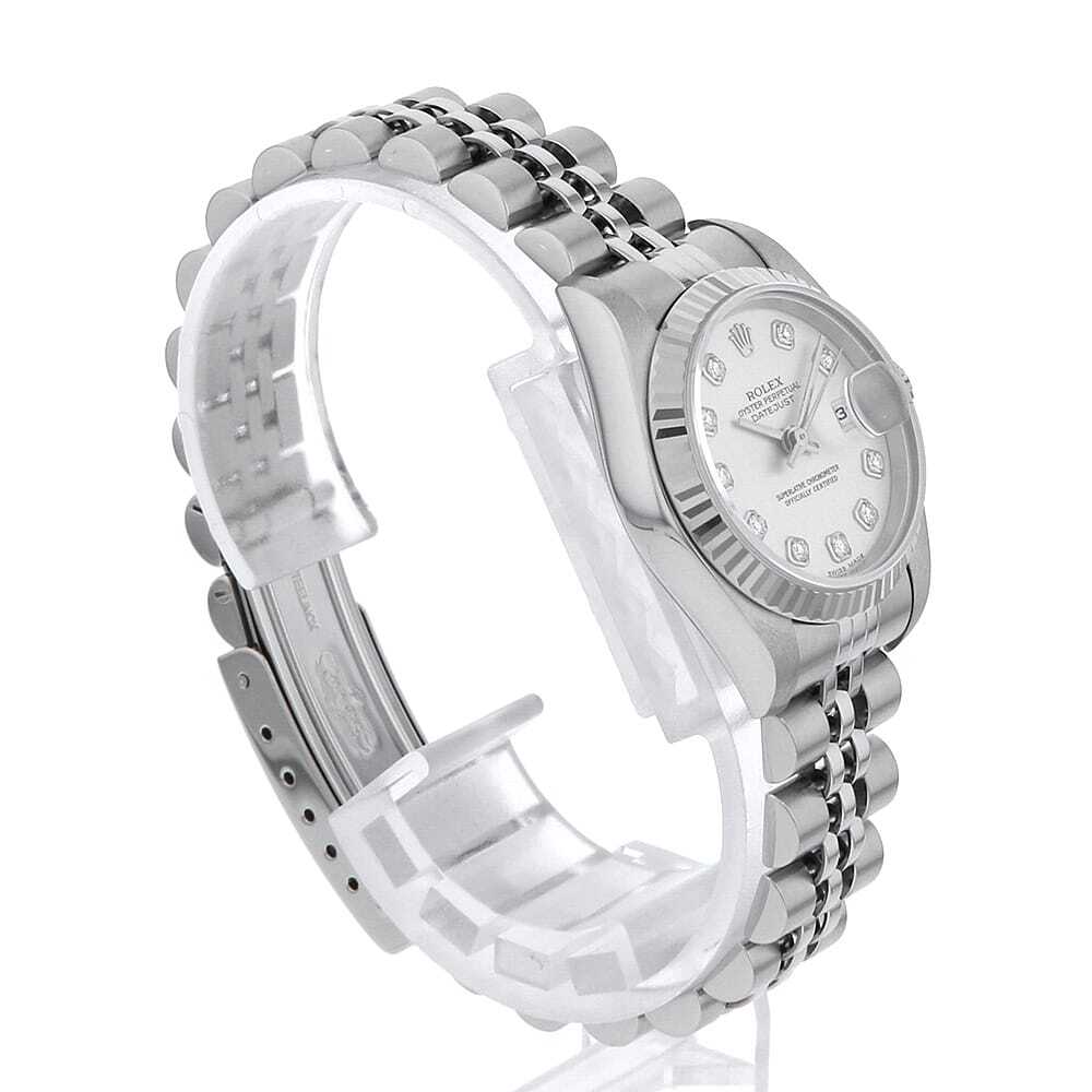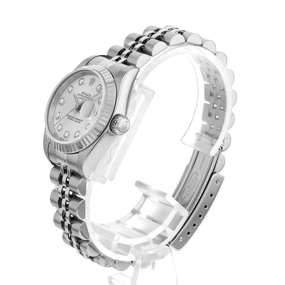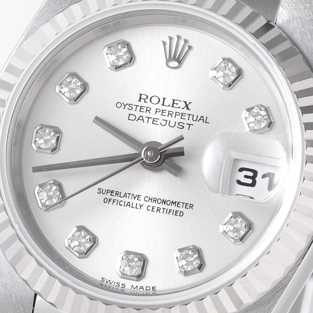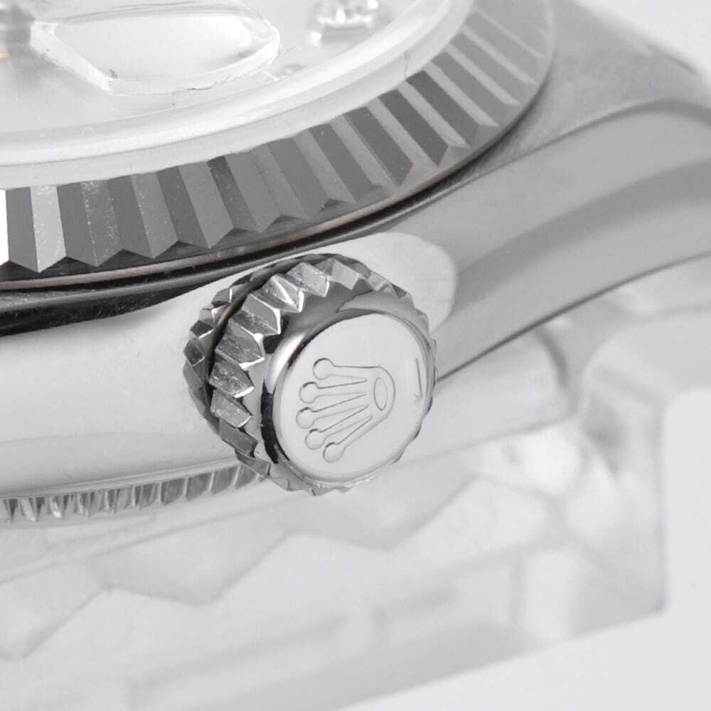 | モデル情報 | 1945年に誕生し、今やロレックスの顔とも言える"デイトジャスト"。ロレックスの三大機構(オイスターケース、パーペチュアル機構、デイトジャスト機構)を全て備えたモデルです。エレガンスとクラシカルなデザインで女性の腕元を華やかに彩ります。ダイアル色・ケース素材などの組み合わせは多岐に渡り、非常に多彩なバリエーションが存在するのが最大の魅力です。 |