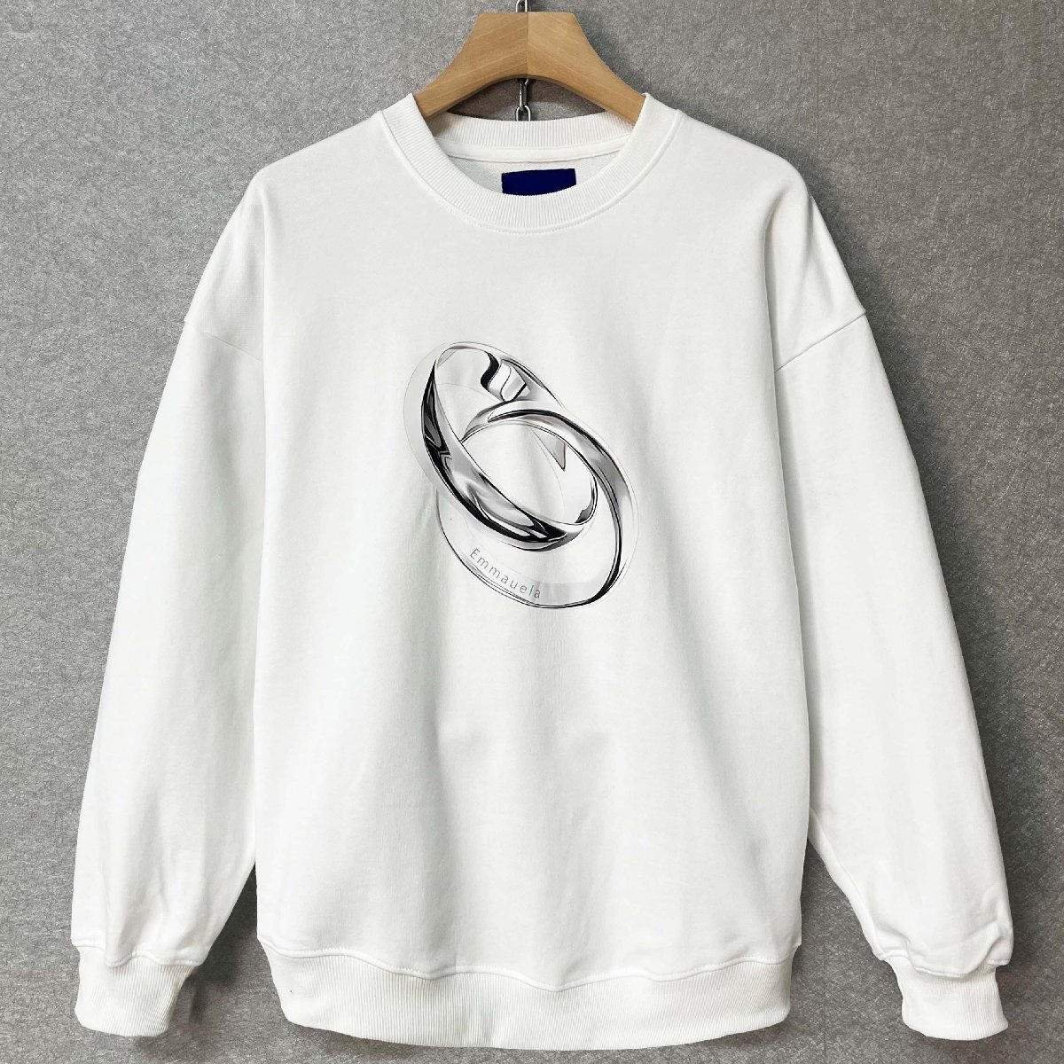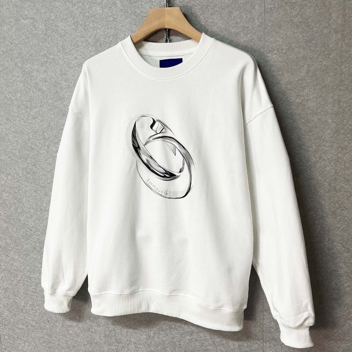人気・トレーナー 定価4万◆Emmauela・イタリア・ミラノ発◆コットン100% 柔らか リング柄 シンプル カットソー 長袖Tシャツ 日常着 M/46