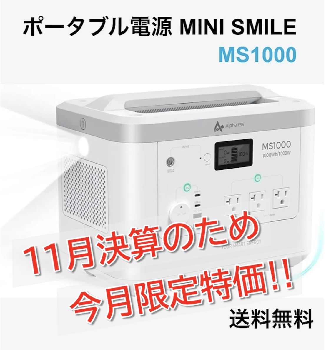 一部地域除き送料無料!《新品未開封》ポータブル電源 AlphaESS「MINI SMILE」MS1000 大容量 1000Wh 家庭用蓄電池 ポータブルバッテリー
