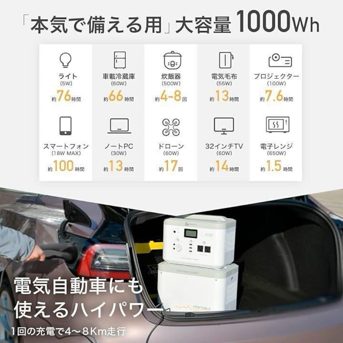 【超大容量1000Wh・純正弦波】