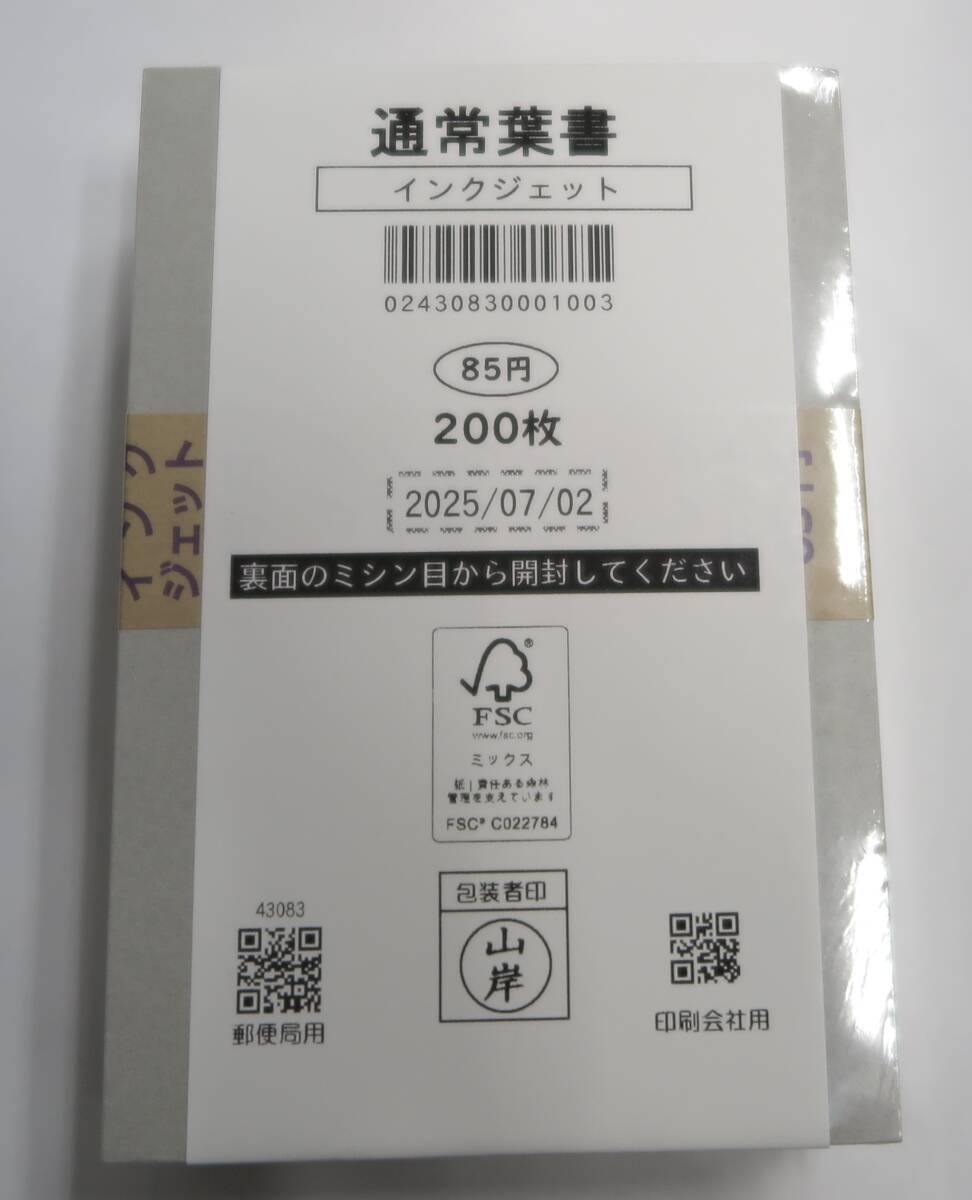 85円官製ハガキ200枚(17000円分)/インクジェット葉書/はがき/送料無料/新料金/未使用