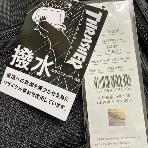 大人気スケーターブランドTHRASHERのリュック。