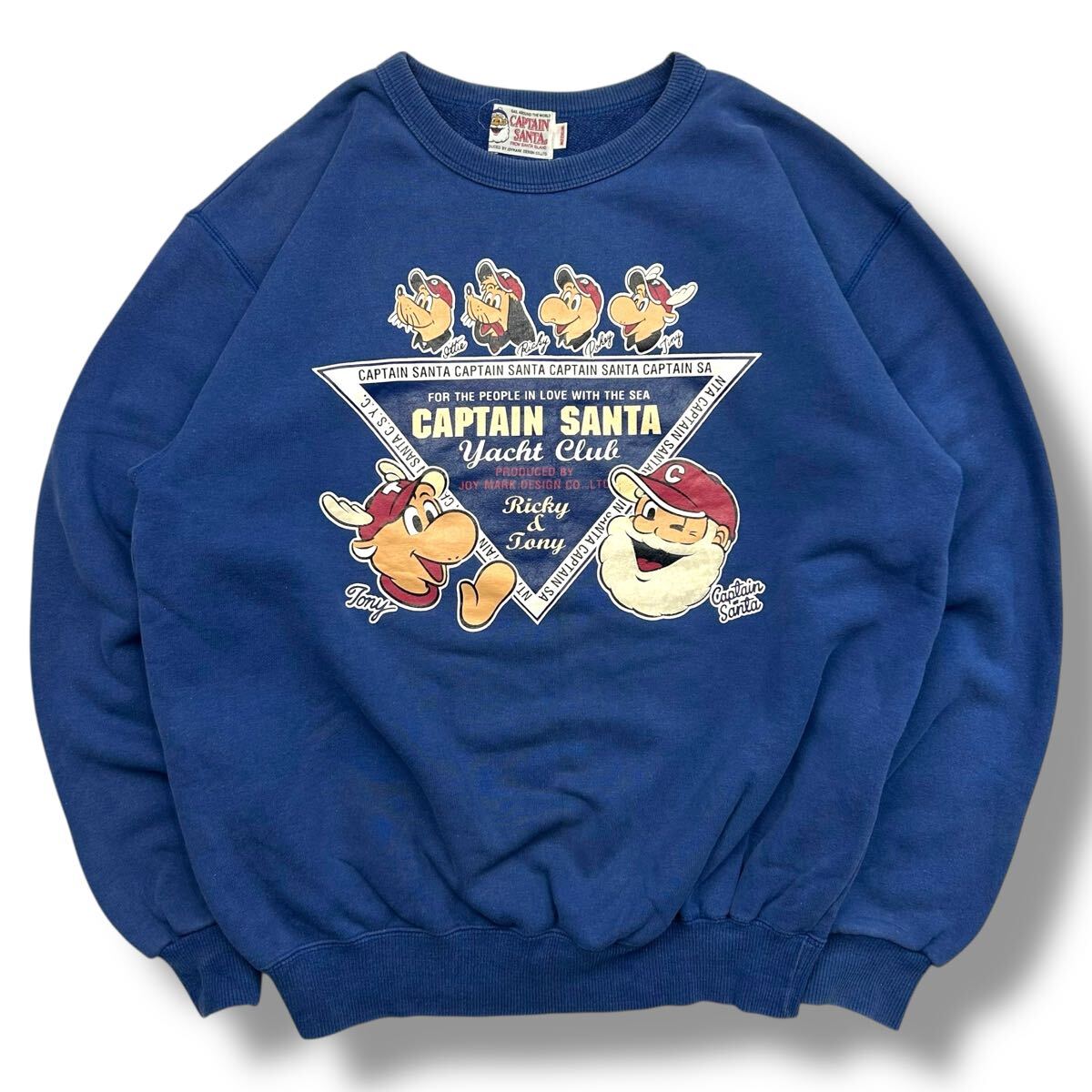(IT1115)CAPTAIN SANTA キャプテンサンタ スウェット トレーナー トップス ロゴ M ネイビー レトロ 古着 ワンポイントロゴ