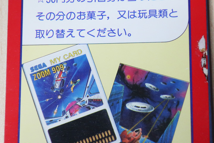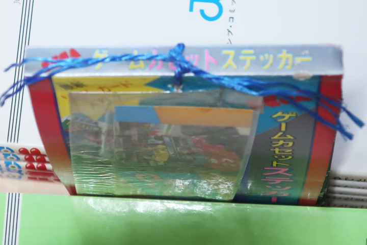 1980年代に駄菓子屋で売られていた、セガのゲーム機「SG-1000」のゲームソフト(カートリッジ・マイカード)がシールになった引き物です。
