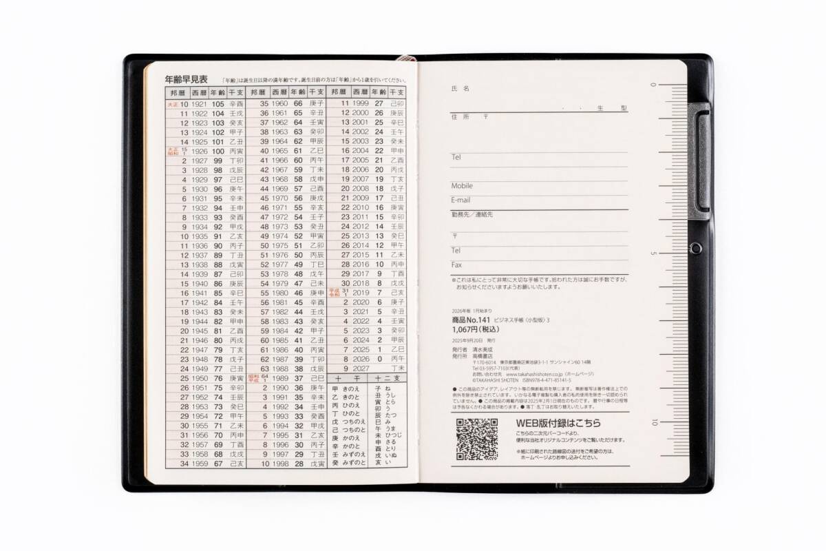スーツの内ポケットに入ってもかさばらない、高橋書店の手帳の中で最小サイズ。