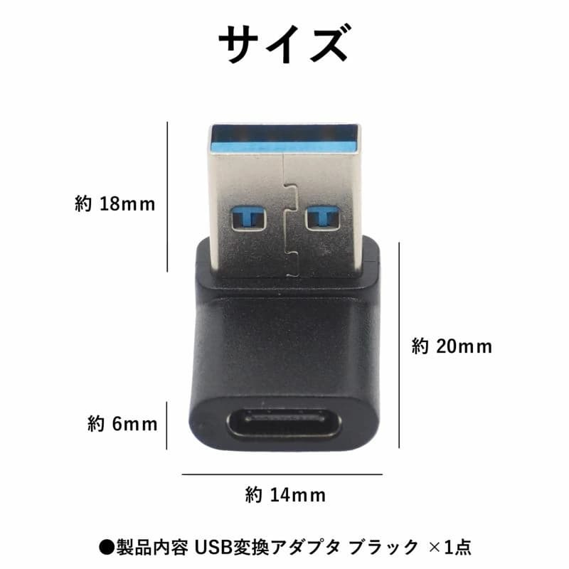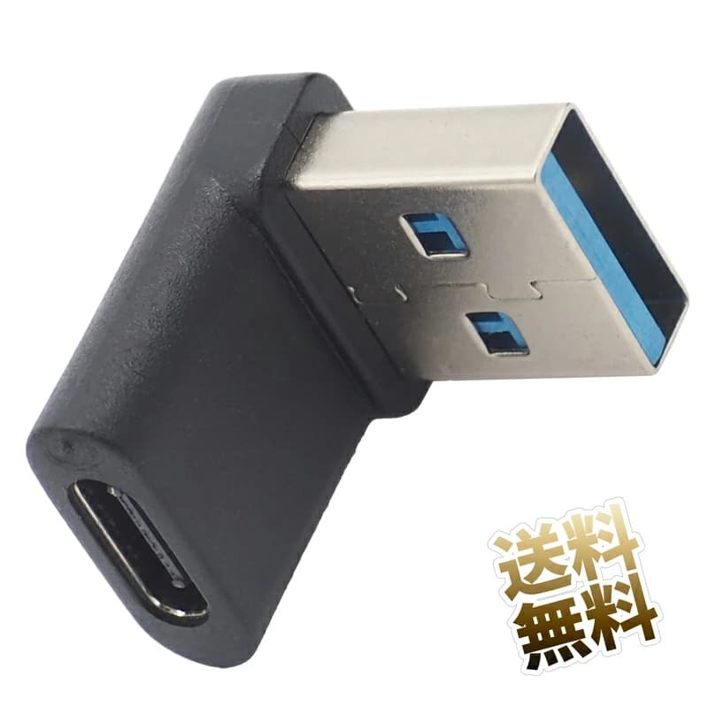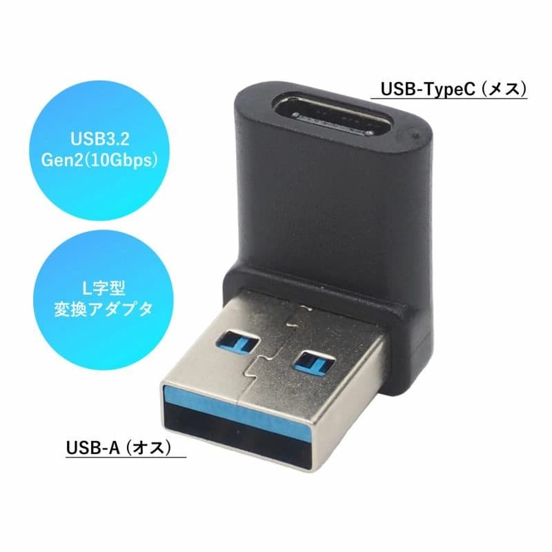USB3.2Gen2(10Gbps) L字型 USB-A (オス) - USB-TypeC (メス) 変換アダプタ