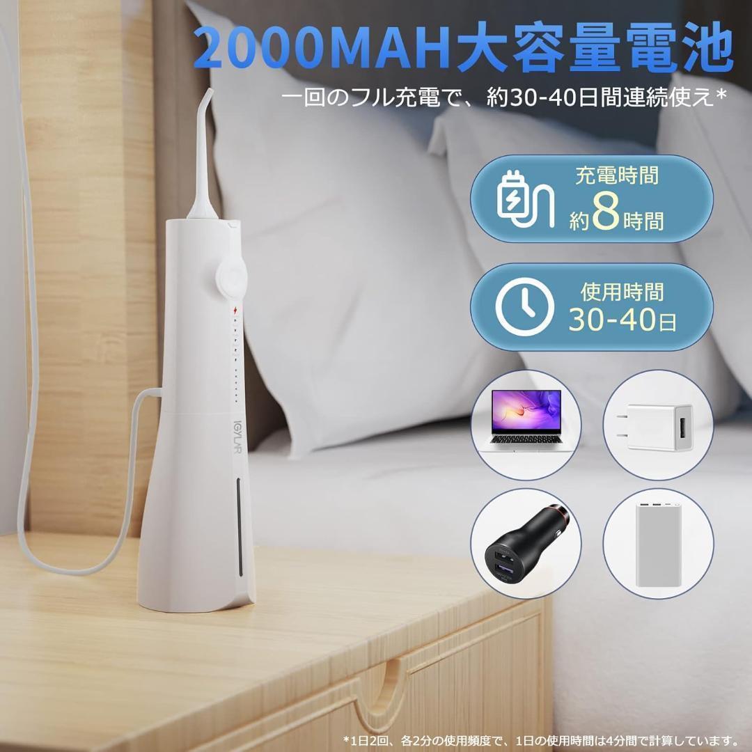 USBタイプC充電式で最大約40日使用可能。コンパクトで持ち運びやすく、収納ポーチ付き。耐久性に優れ、高品質素材で口腔ケアを長くサポートします。
