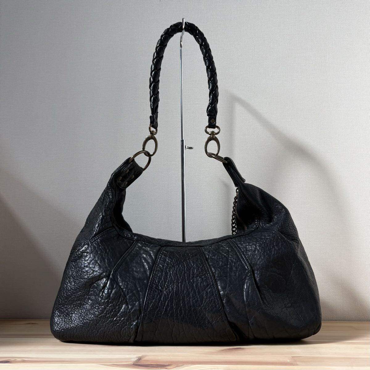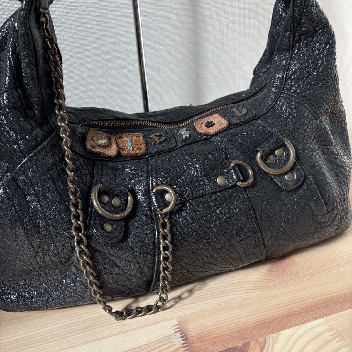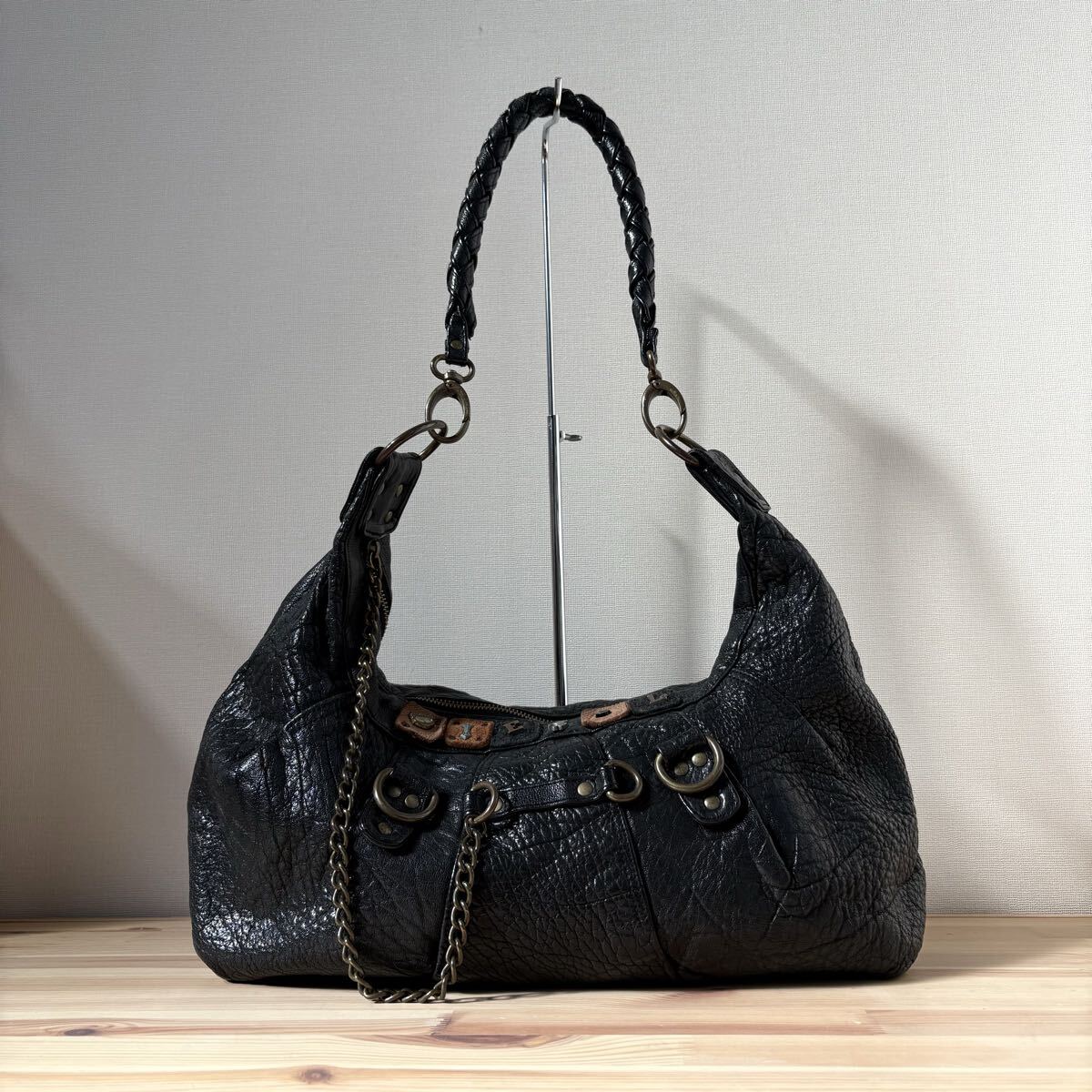 Y2k DIESEL Archive Black Leather Hobo Shoulder Bag
