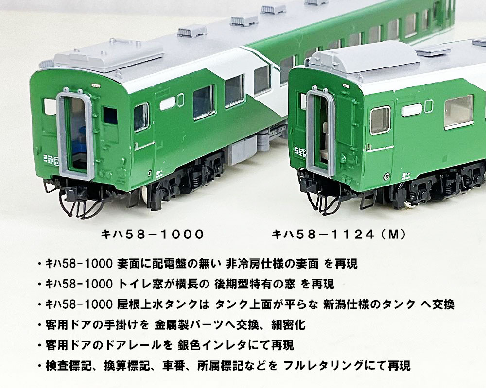 精密加工!!TOMIX キハ58加工 大糸線色 前期非冷房車 パノラマ窓車冷房準備車 115系、183系、169系、475系、485系、489系、413系と