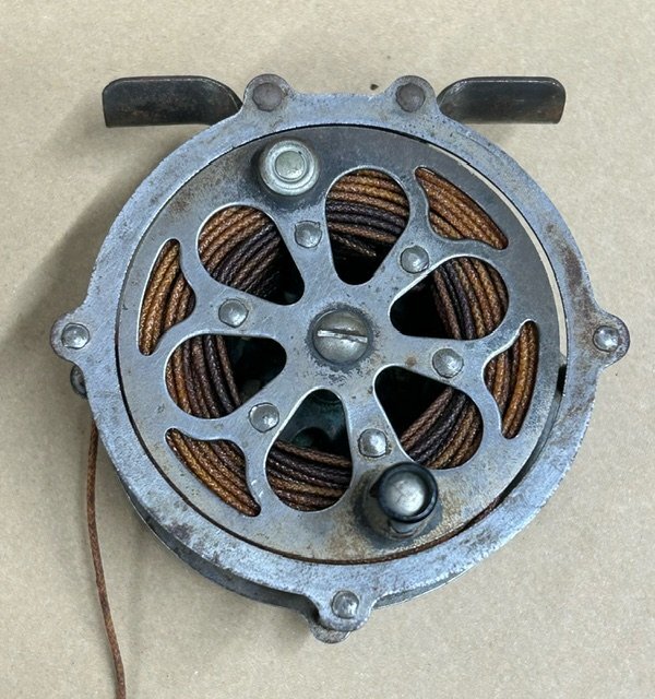 | 商品説明 | ヴィンテージ フライリール 現代の国内産フライリールでこのタイプのものは、KINEYAさんのcavousが有名ですが、こちらはアメリカ製で、サウスベンド社のフライリールST.JOE となります。 現代ではガルバンに代表される超軽量化フライリールのようなデザインをバードケージの様なとも言いますが、こちらのリールは、スプールのミッドアーバー化にデザインされているパイプが鳥籠の様であるということから、バードケージリール(スケルトンリールとも言われますが、)とも言われるようです。 さて、製品の方は、ヴィンテージなりの汚れ・傷・金属の腐食等有ります。 クリックのON・OFFがカップ側のレバーで切り替えができるのですが、 ギアが摩耗しているため、ONにしてもクリックは効きません。 実用には、クリックの修理が必要です。 サイズ的に#3前後のロッドに最適な大きさです。 ■外径:約66㎜(ピラー部分は除く) ■スプール幅:25㎜ 袋・箱無し 写真を良く見てご判断ください。 ノークレーム・ノーリターンでお願いいたします。 | ||||