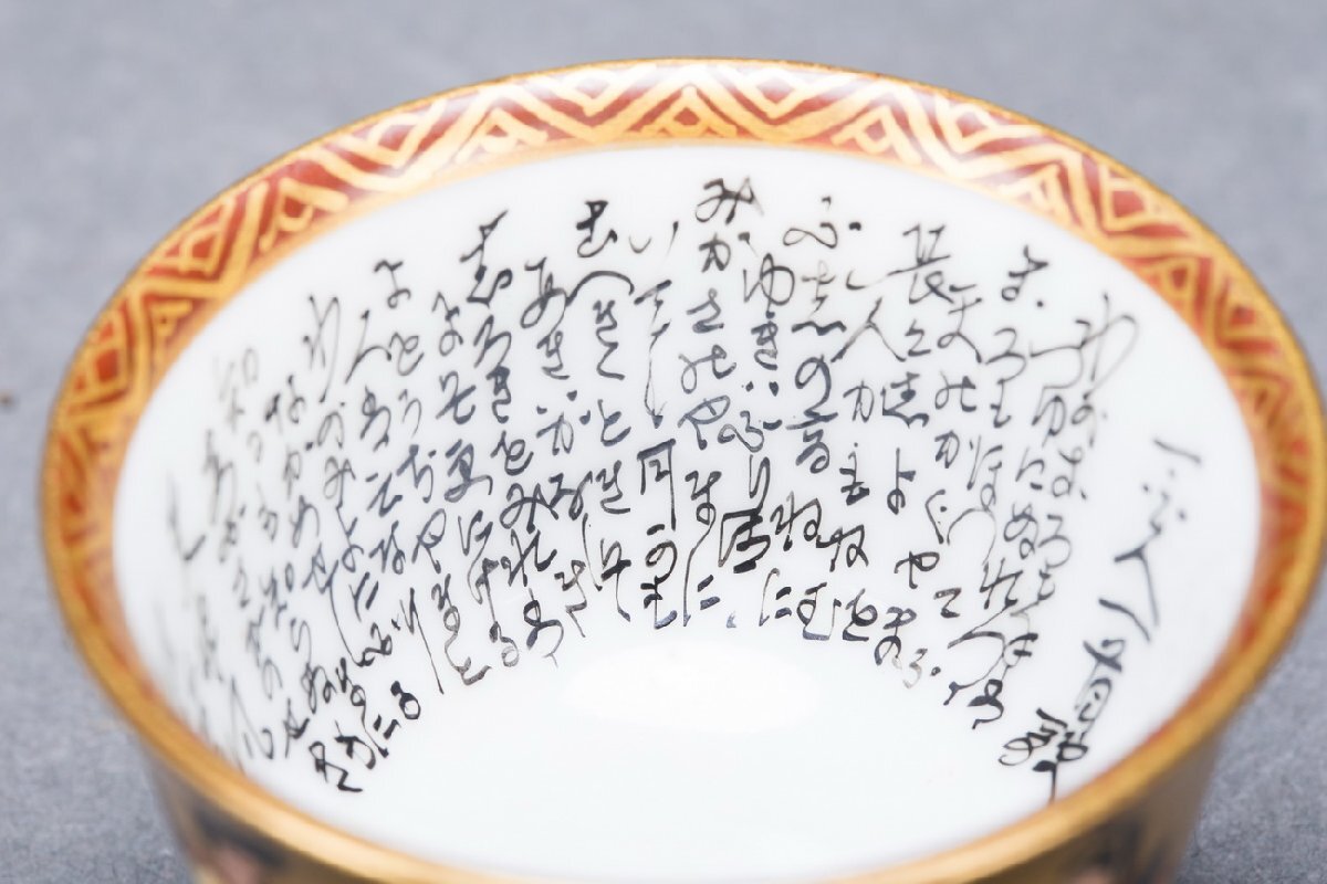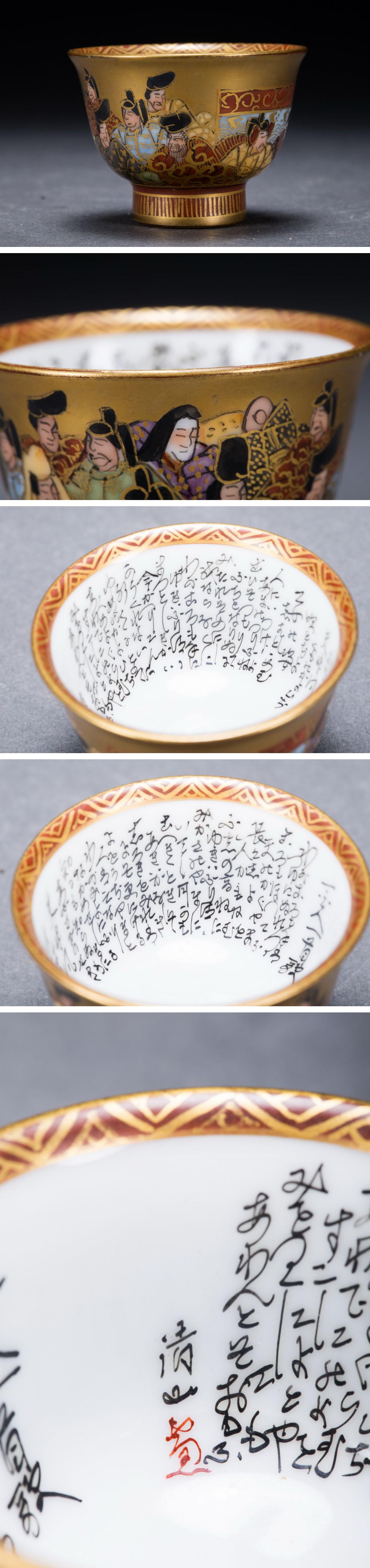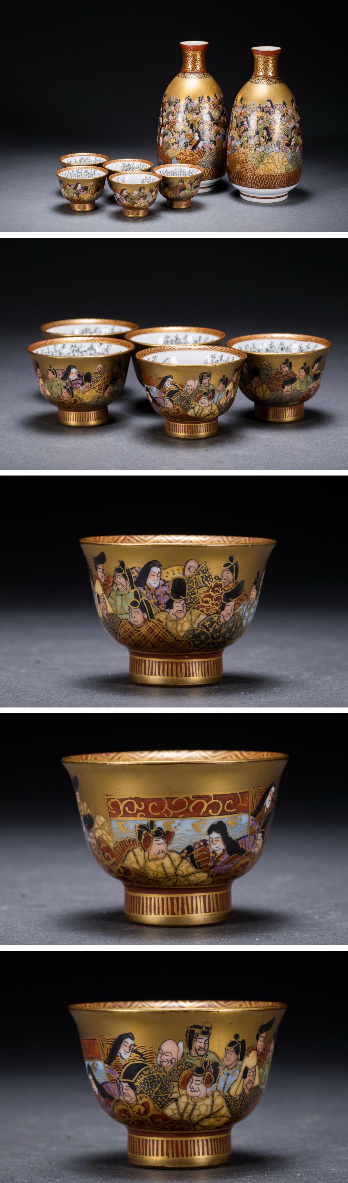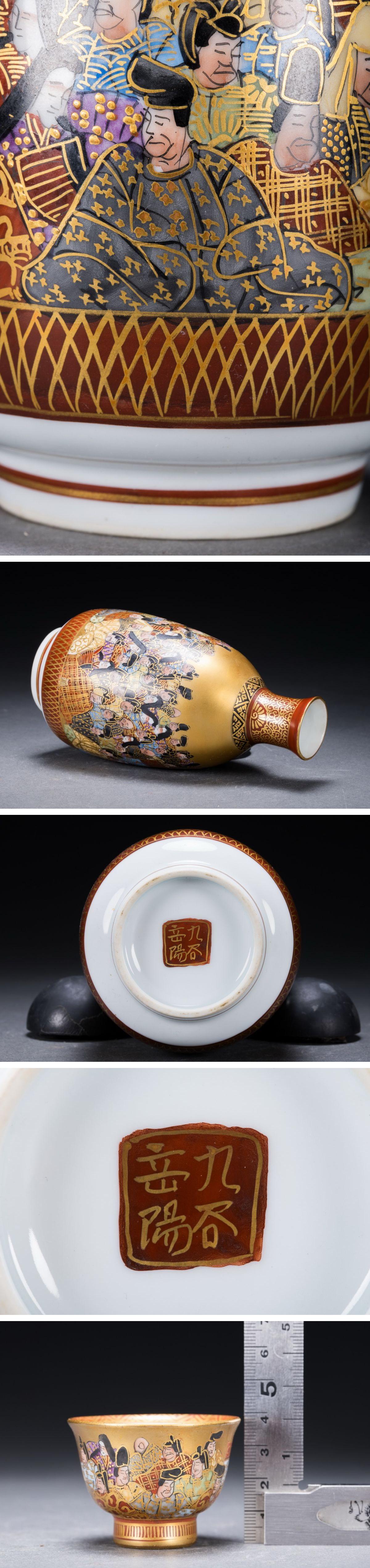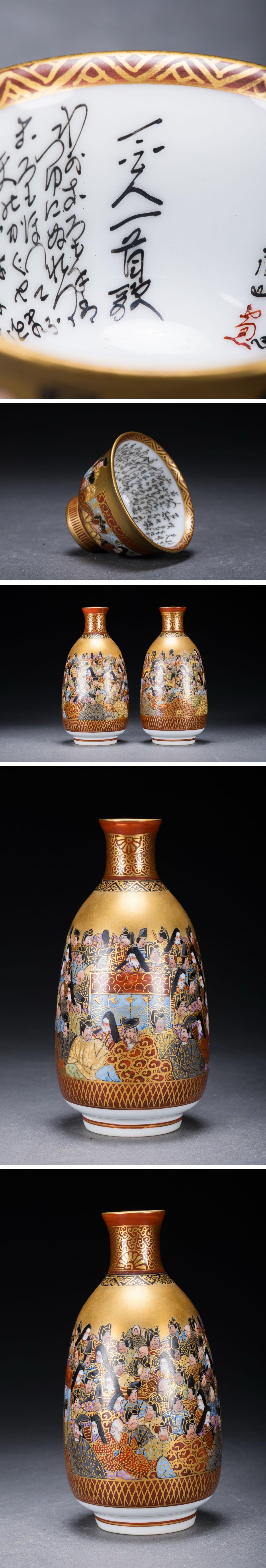 【雲錦】某有名オークション購入 時代物 九谷焼 九谷岳陽造 金襴手 百人一首徳利 酒具揃い 時代コレクション7L10-199S2