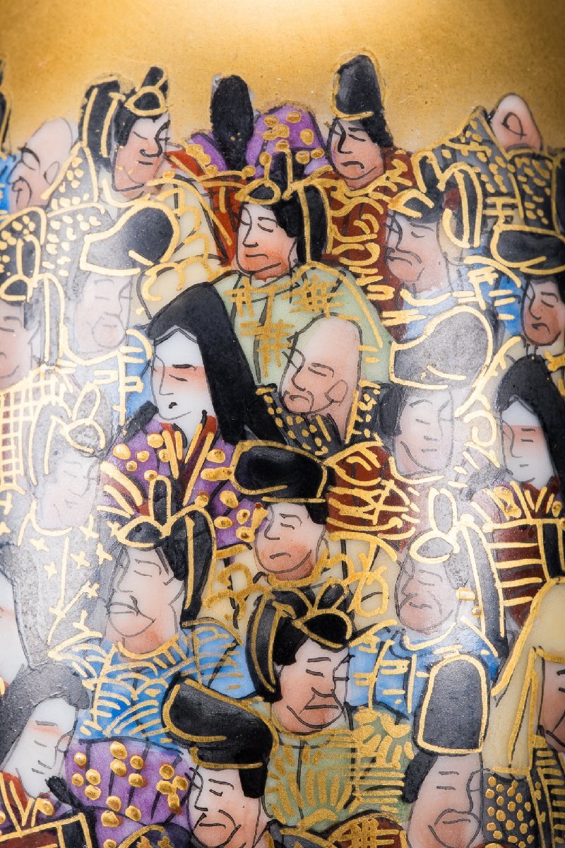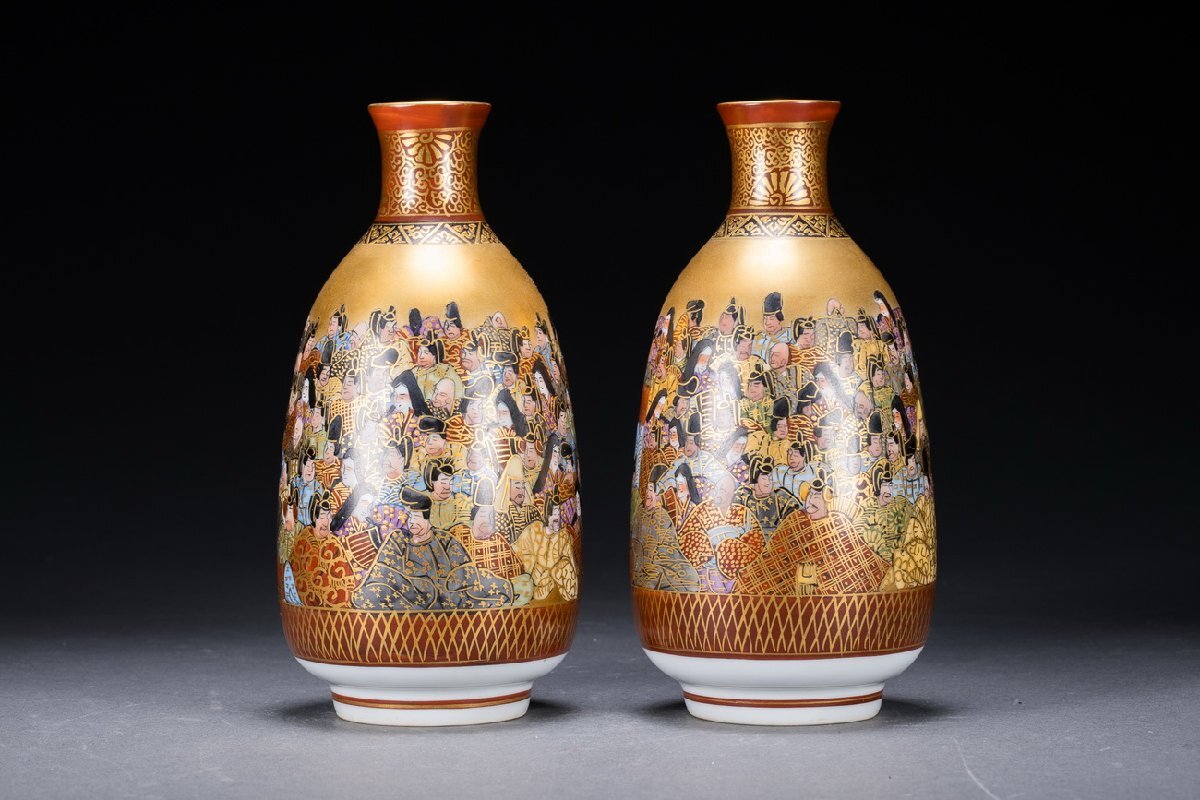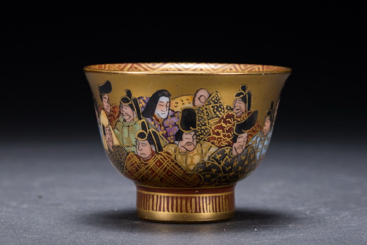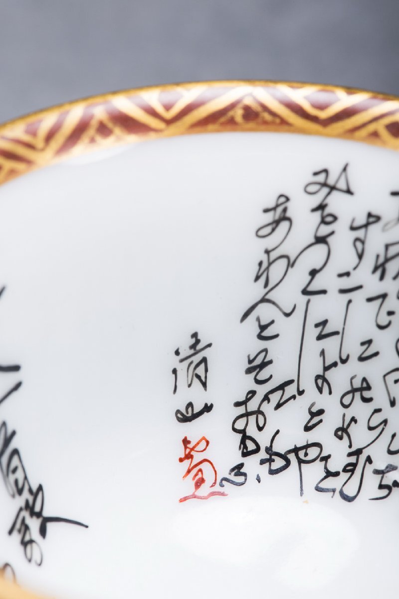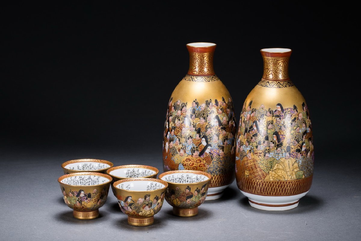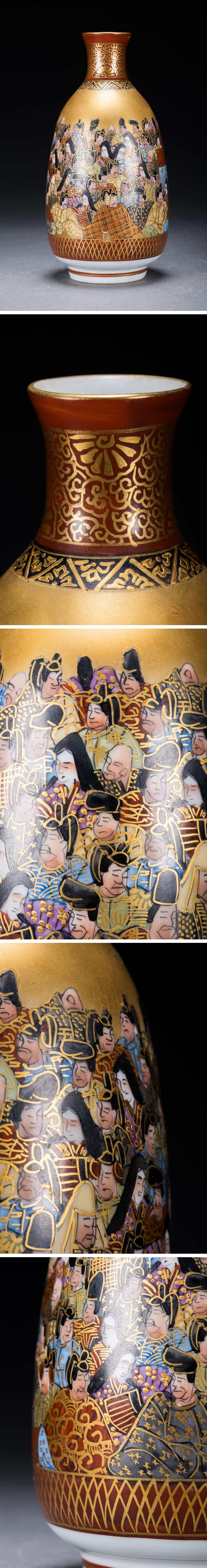 【雲錦】某有名オークション購入 時代物 九谷焼 九谷岳陽造 金襴手 百人一首徳利 酒具揃い 時代コレクション7L10-199S2
