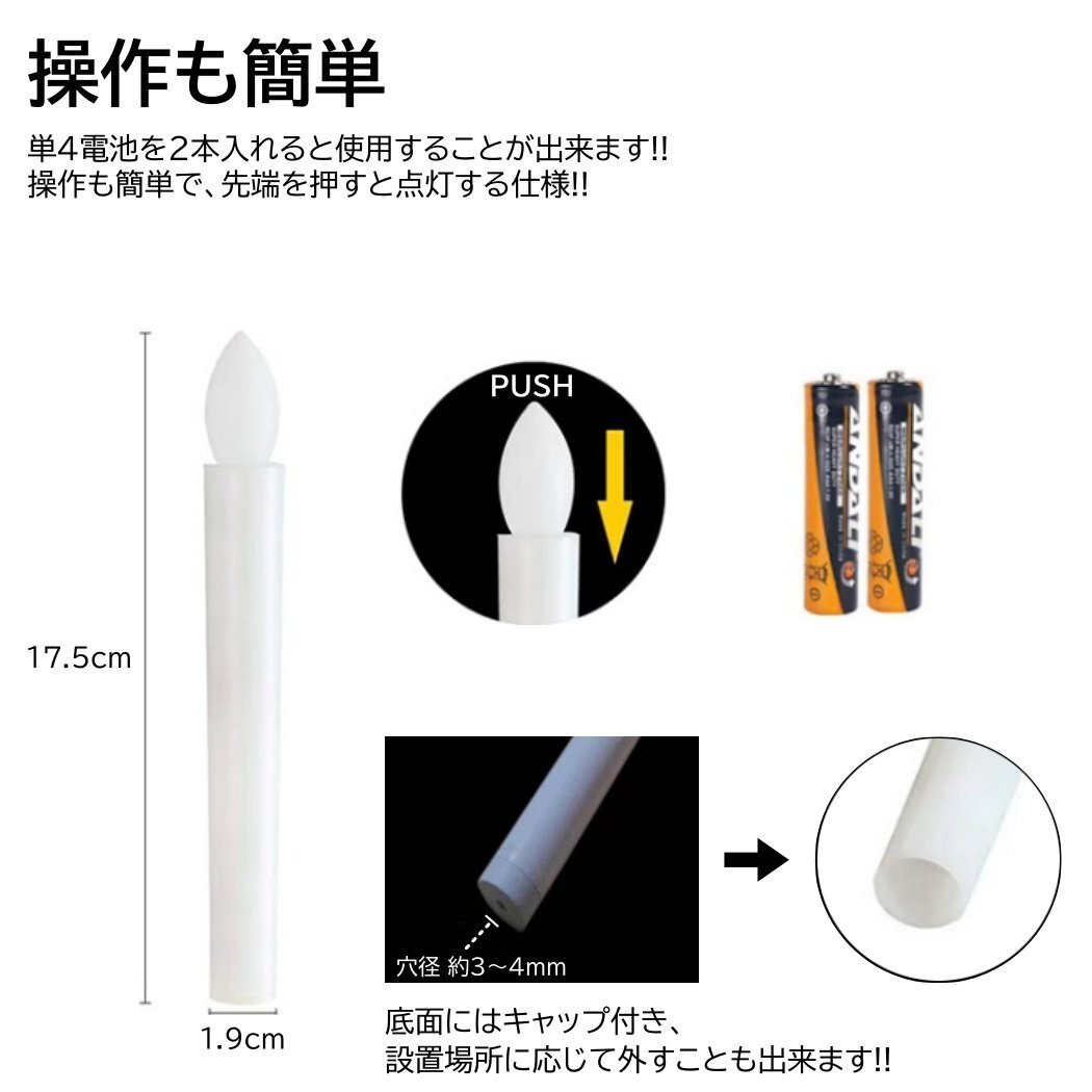 2本入 電池式 LEDろうそく 17cm 簡単操作 スイッチ 火災 安心 お祭り お盆 お彼岸 仏壇 提灯蝋燭 ロウソク 電池 LED 高齢 単4 ランプ LED