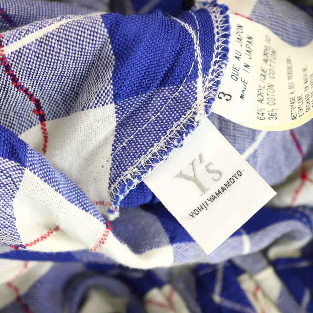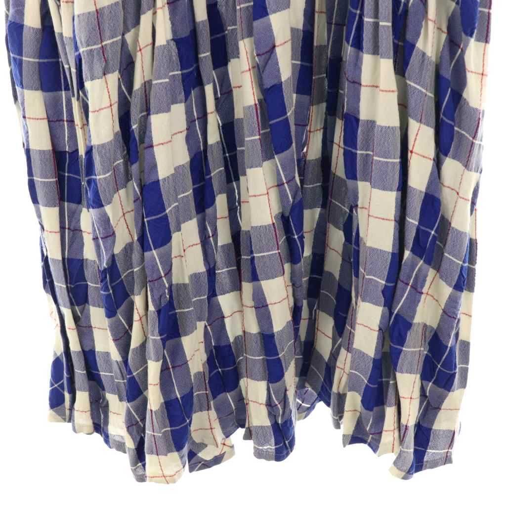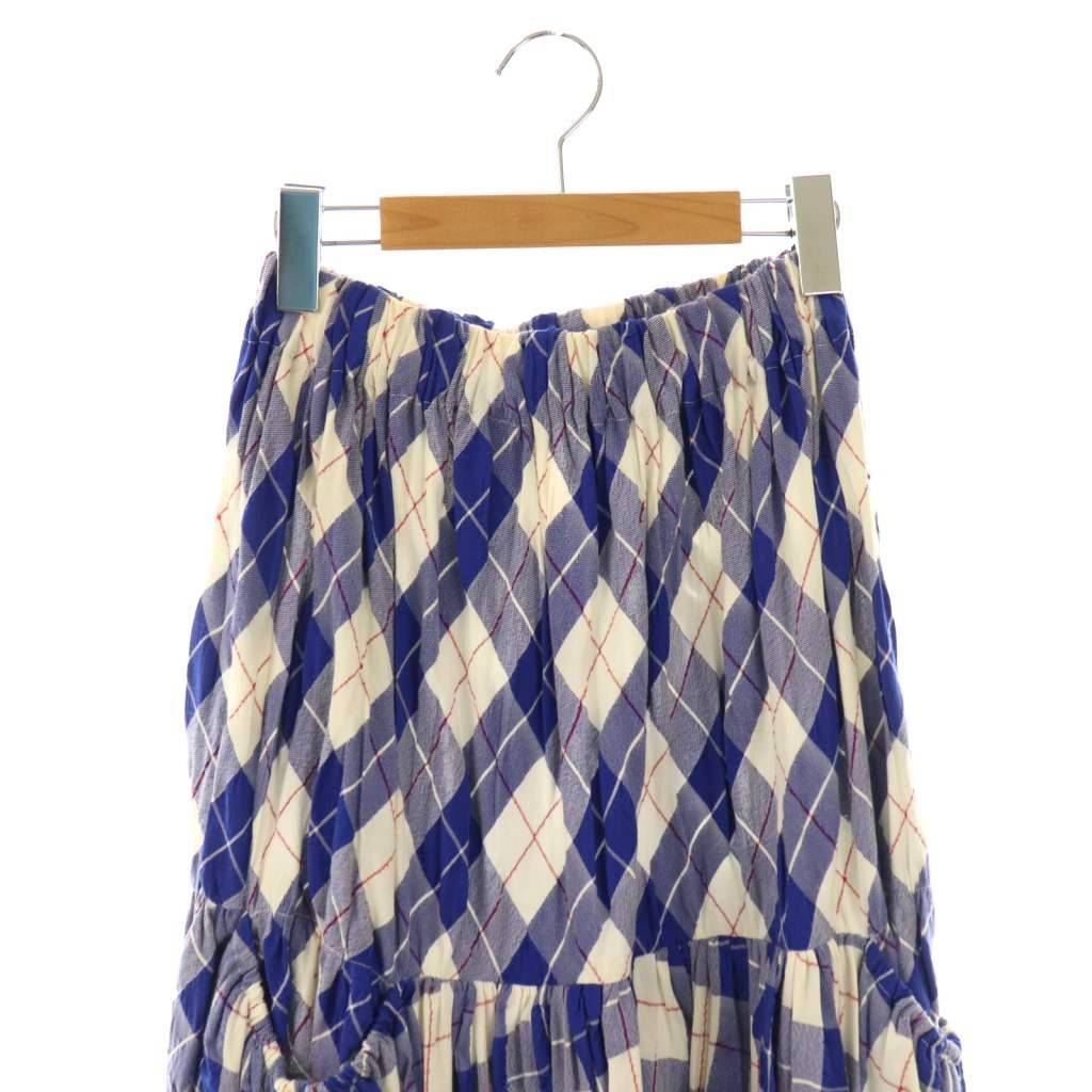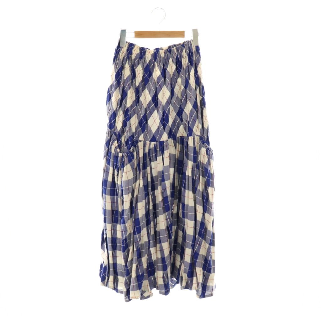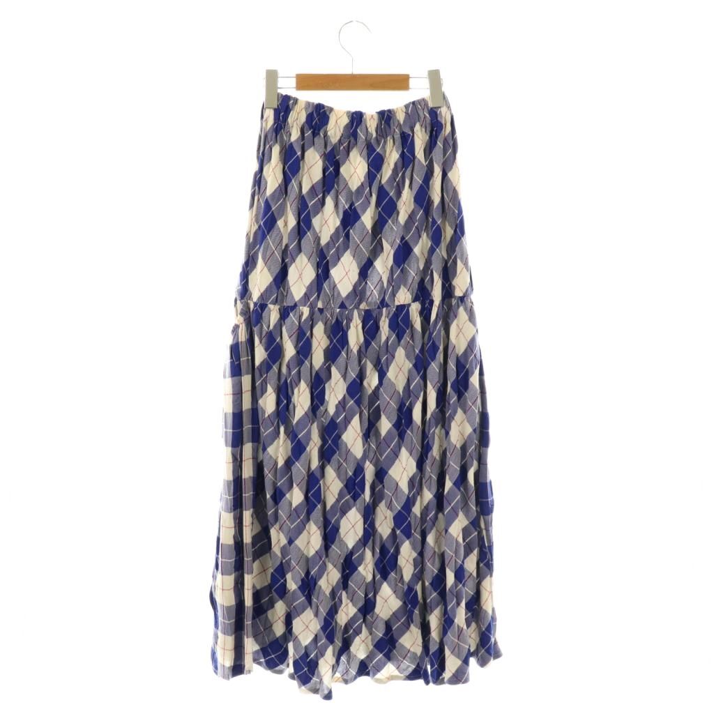 ワイズ Y's 総柄 フレアスカート マキシ ロング チェック 3 青 ブルー 白 ホワイト /AT ■OS レディース