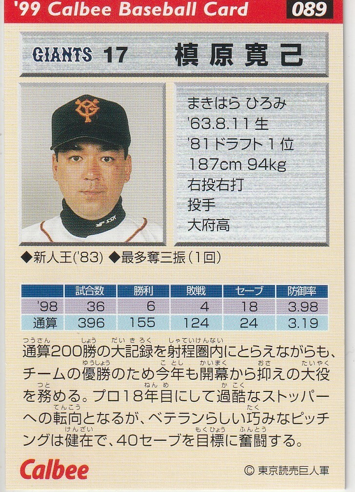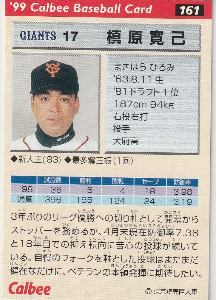 ●1999カルビー【槙原 寛己】プレ版:金箔押サインパラレル No.089,161:巨人