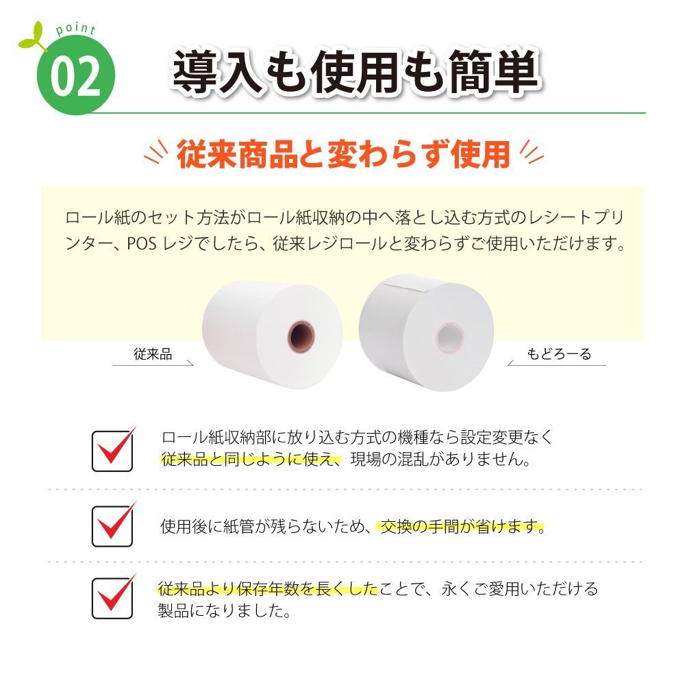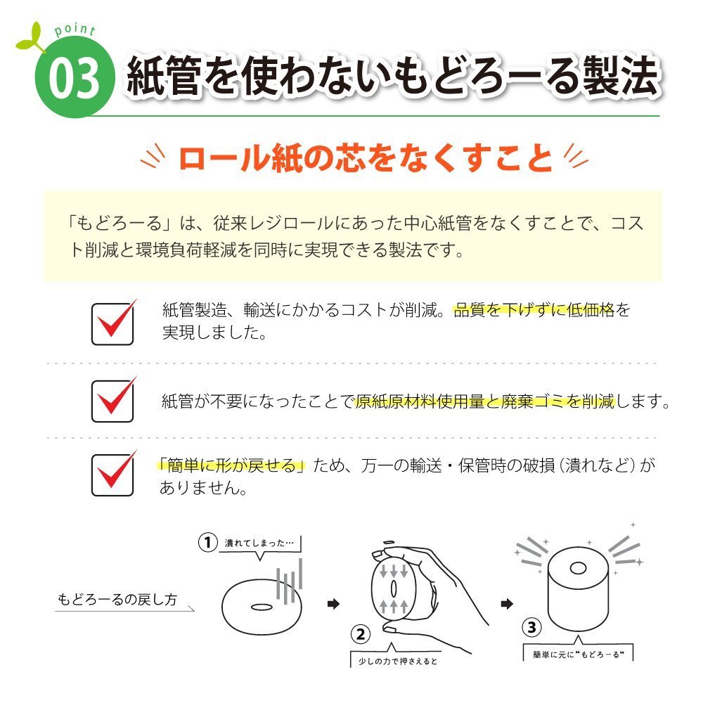 送料無料 環境配慮型芯なし 感熱レジロール紙 58×50×コアレス 紙厚65μ 中保存 もどろーる (20巻パック) 58×50×12と同等タイプ
