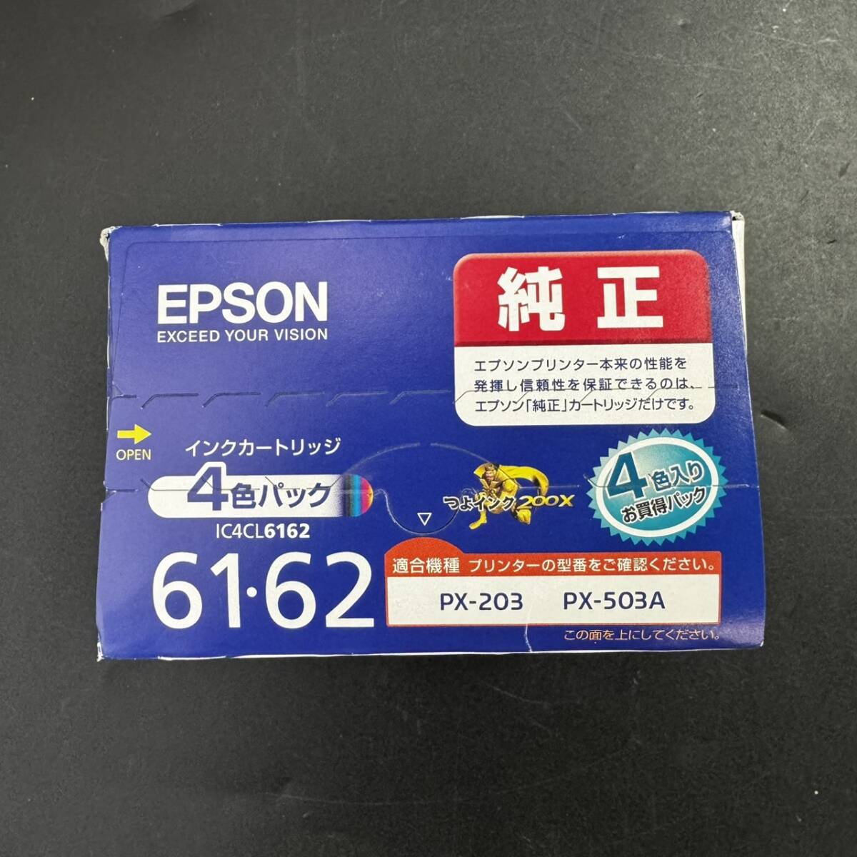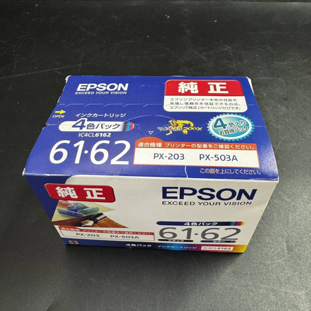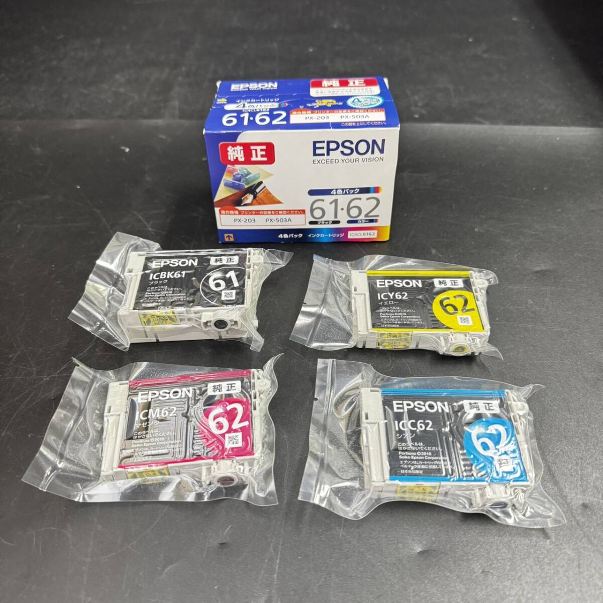商品名:インクカートリッジ ブランド:EPSON 型 番:IC4CL6162 年 式:不明 付属品:なし サイズ:箱(縦)約7cm × (横)約10.5cm × (奥)約7cm :ブラック(縦)約5.2cm × (横)約7.5cm × (奥)約2.4cm :マゼンダ・シアン・イエロー(縦)約5.2cm × (横)約7.5cm × (奥)約1.2cm ※若干の誤差がある場合がございます。 状態について ランク 【E】 破損や欠損などが見受けられる商品ですが、 素材やパーツとしての価値があり、リメイクや部品取りにおすすめの商品です。 コメント ・1箱は未開封で中身の確認はしておりません。 ・インクカートリッジは真空パックになっております。 ・未開封の推奨使用期限が、2012.06になっております。 ・使用可能か分かりません。ご了承の上ご入札下さい。 ───────────────[ 状態ランク表 ]──────────────── 【N】 新品・未使用品の新古品です。 【S】 キズ・汚れがほとんど見受けられず、非常に状態の良い商品です。 【A】 わずかにキズ・汚れがありますが、全体的に状態の良い商品です。 【B】 キズ・汚れなど、使用感が見受けられますが、 中古品としては比較的良好な状態です。 【C】 キズ・汚れ・型崩れなどの目立つ使用感がありますが、 ご使用には問題のない商品です。 【D】 通電の確認はできておりますが、稼働や動作の確認は行っておりません。 【E】 破損や欠損などが見受けられる商品ですが、 素材やパーツとしての価値があり、リメイクや部品取りにおすすめの商品です。 ※ランクは社内基準です。 ──────────────────────────────────────── 送付方法 ゆうパック(着払い) 60サイズ ※千葉市稲毛区からの発送となります。 ※出品時に商品を梱包しているため、基本的に※「同梱不可」となります。 ※こちらの商品は発送のみの対応となります 防犯上の観点から、 【引取り限定】【家財便または引き取り】の商品以外は 従業員の安全の為、直接の引取りはお断り致します。 | |||