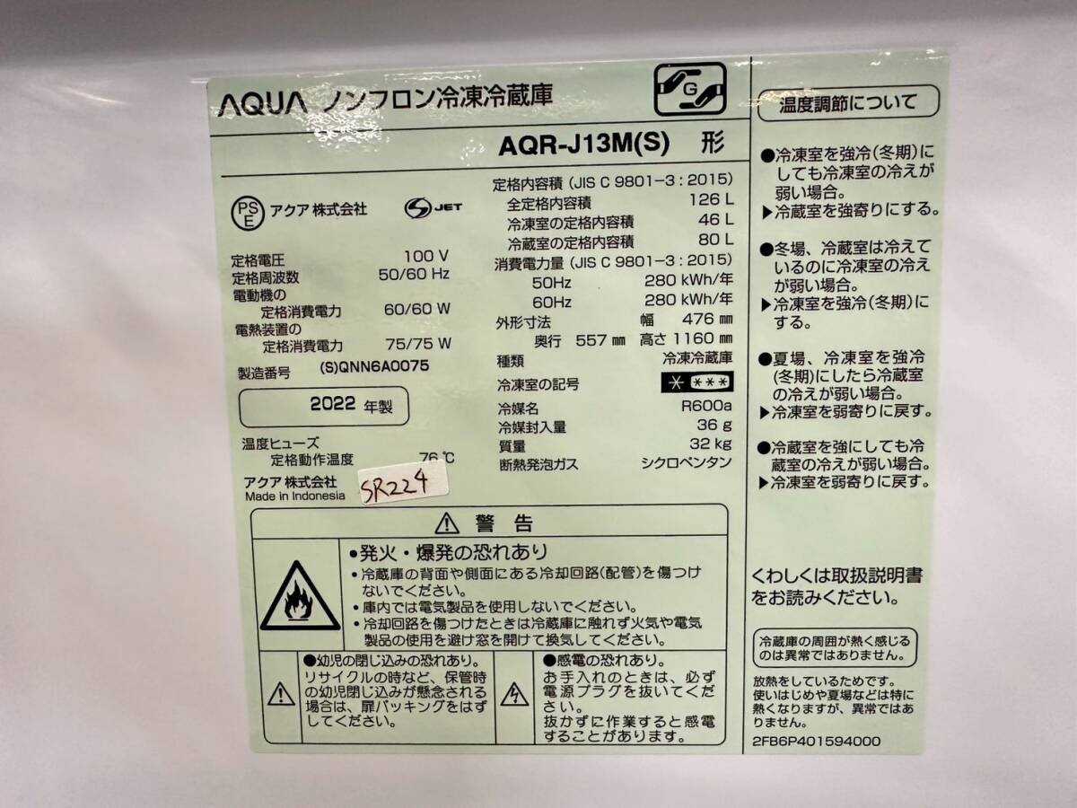 大阪送料無料★3か月保障付き★冷蔵庫★アクア★2ドア★2022年★AQR-J13M(S)★SR-224