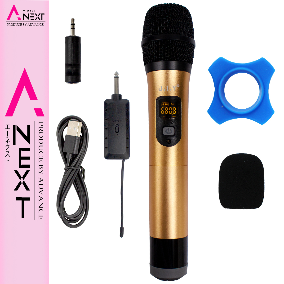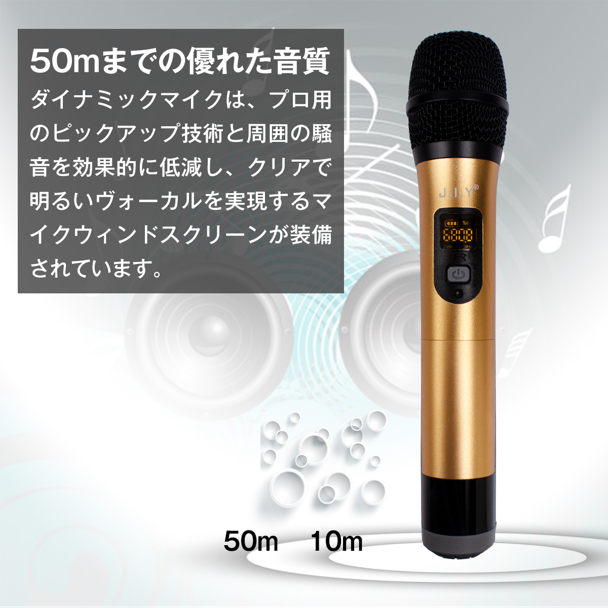 ワイヤレスマイク ハンドマイク 無線 コードレス プロフェッショナル マイク カラオケ ゴールド 6.5mm 3.5mm アダプター 街宣
