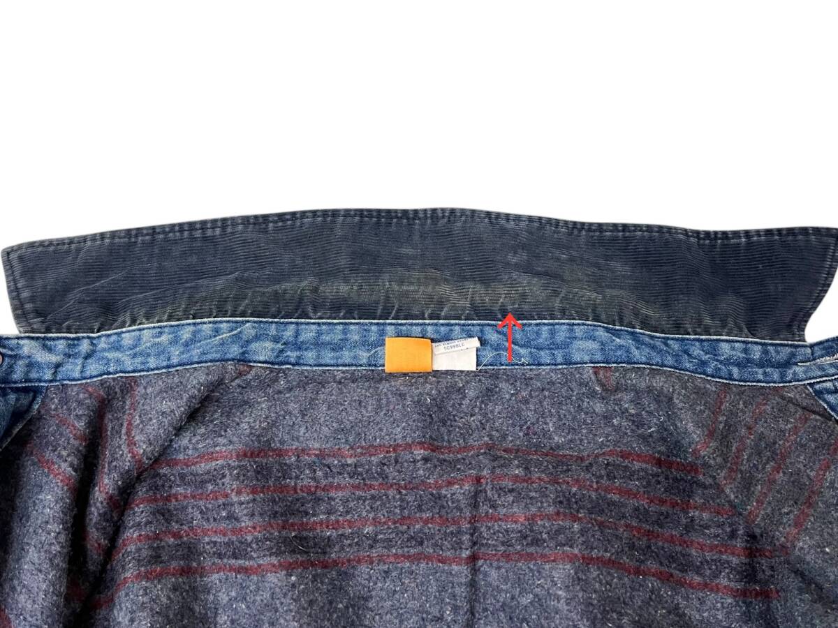 | 状態詳細 | ポケット破損。襟部分汚れあり。袖部分穴あきあり。全体的にシミ汚れが複数箇所あり(写真参照) ・出来る限り状態の記載はいたしますが見落としにより完全に表記が出来ない場合がございます。 ・『新品』『デッドストック』『未使用品』表記の商品におきましても未使用品ですが、汚れ・伸びなどが若干生じる場合があります。 ・ご利用のパソコン環境や撮影時の光の加減で色や素材感などうまく表現できない場合があります。 ・気になる点は必ず落札前にご質問をお願いいたします。 |