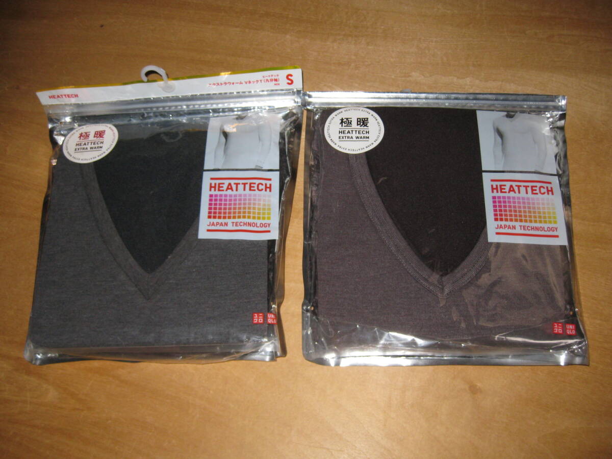 2枚セット ユニクロ ヒートテック エクストラウォーム 極暖 VネックT [九分袖] MEN/メンズ ダーク・グレー Sサイズ 送¥185~