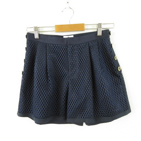 ランバンオンブルー LANVIN en Bleu ショートパンツ メッシュ 紺 38 *A605 レディース