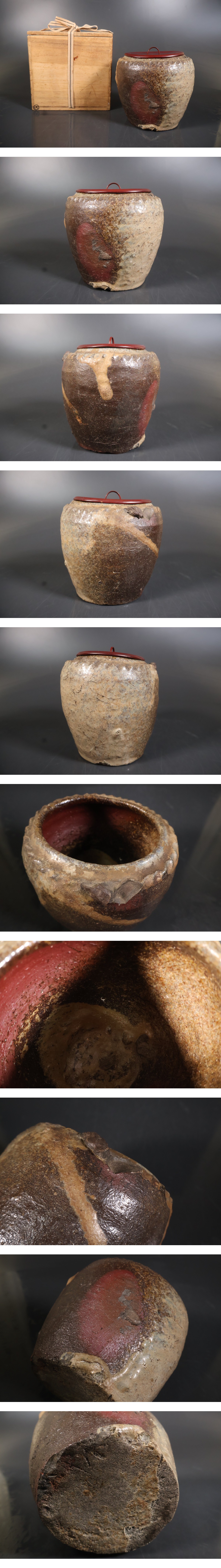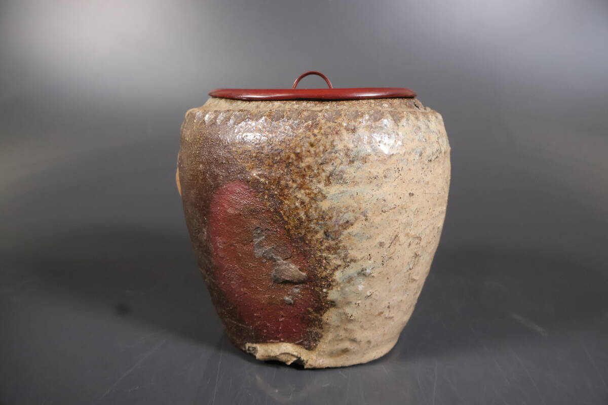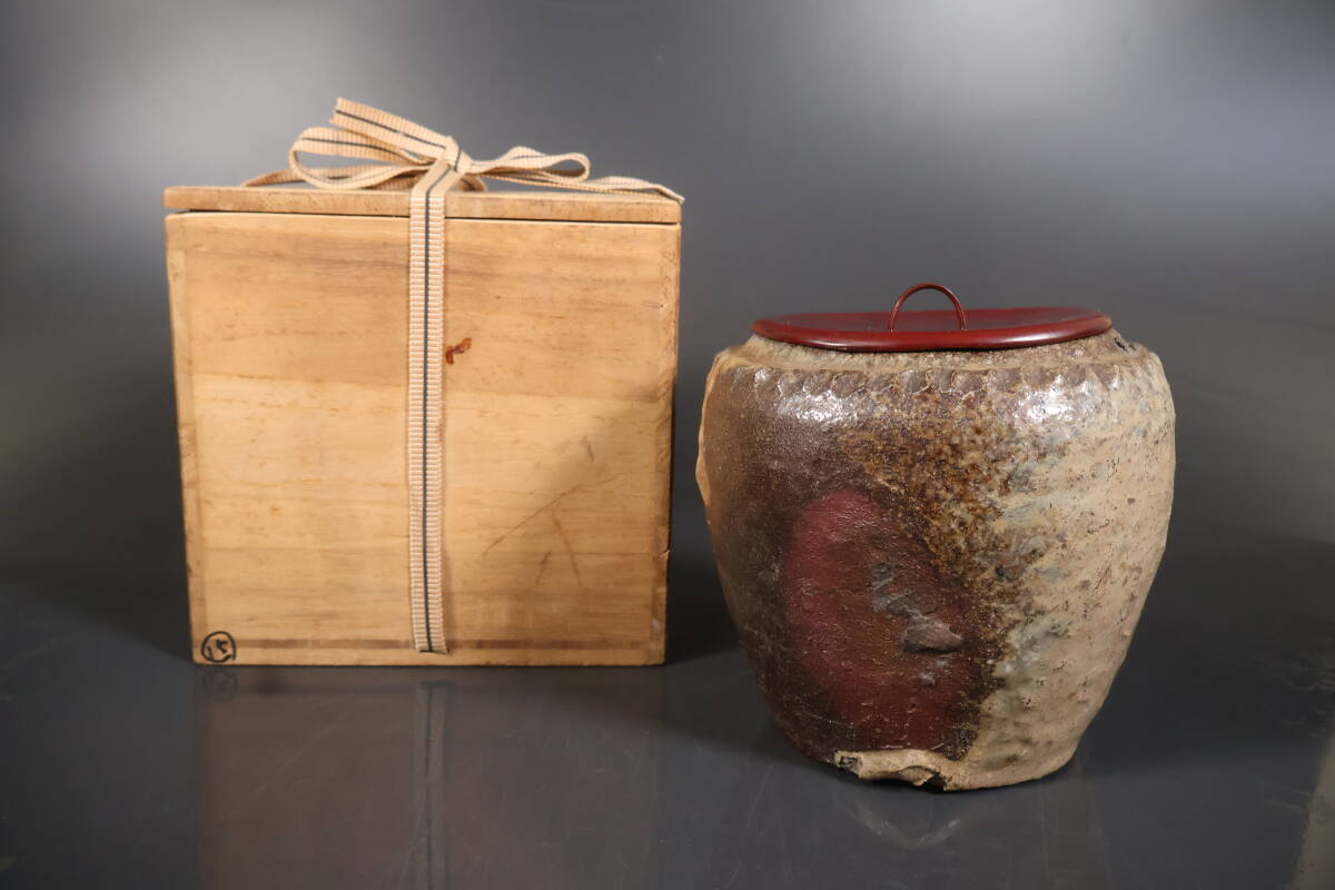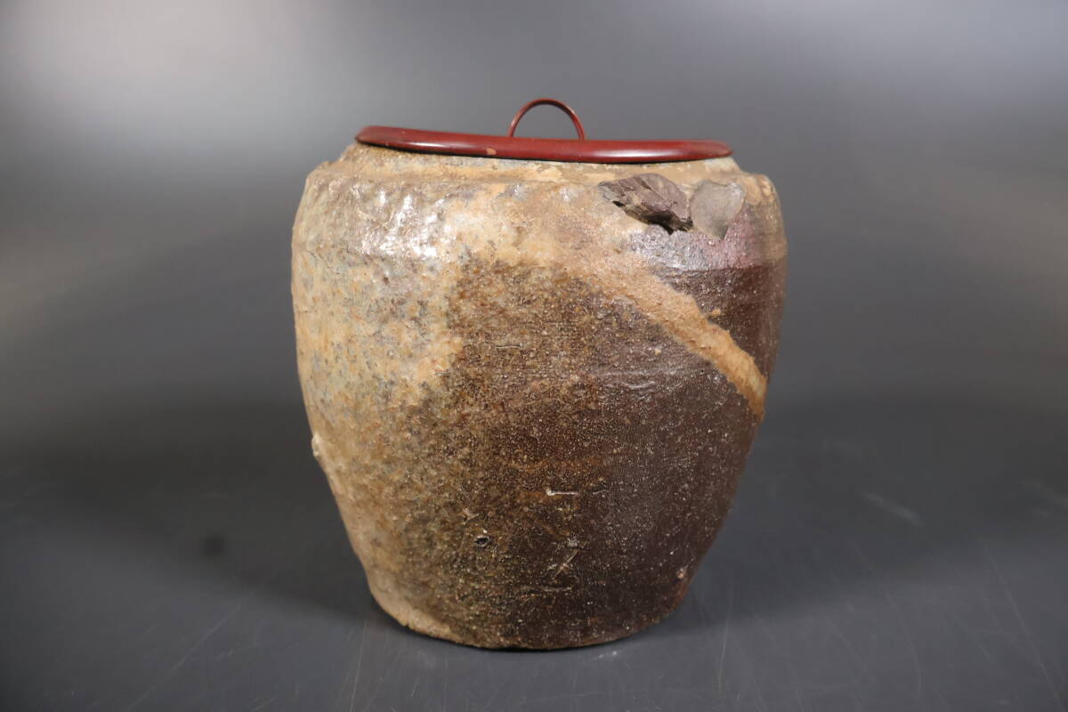 【和】(A3701) 時代古作 桃山 古常滑窯変釉壺 水指仕立 保管箱有 茶道具