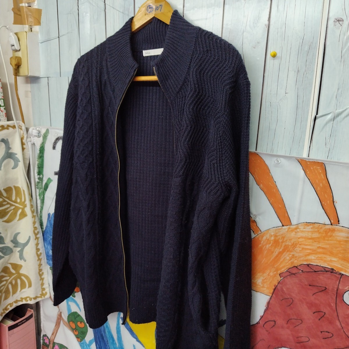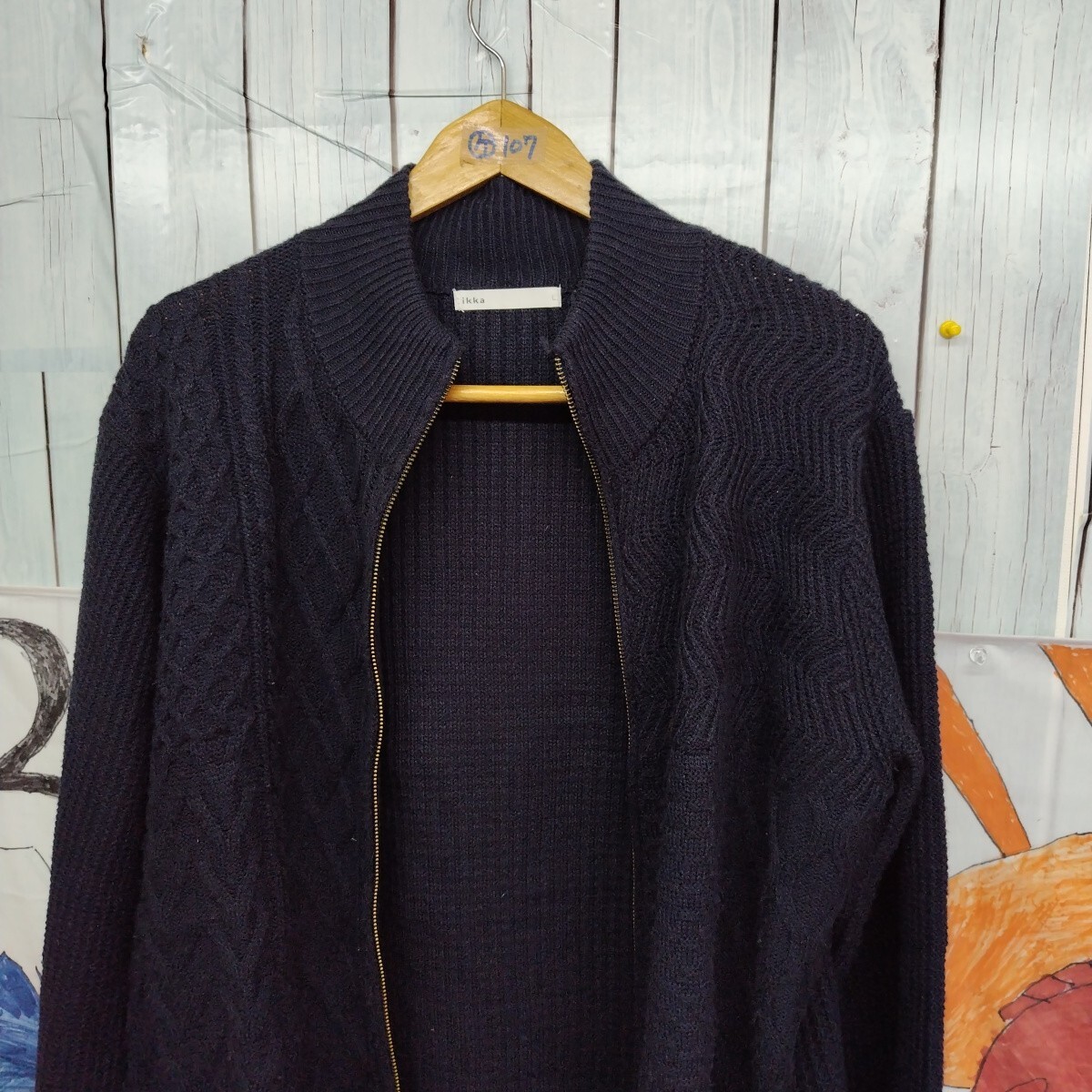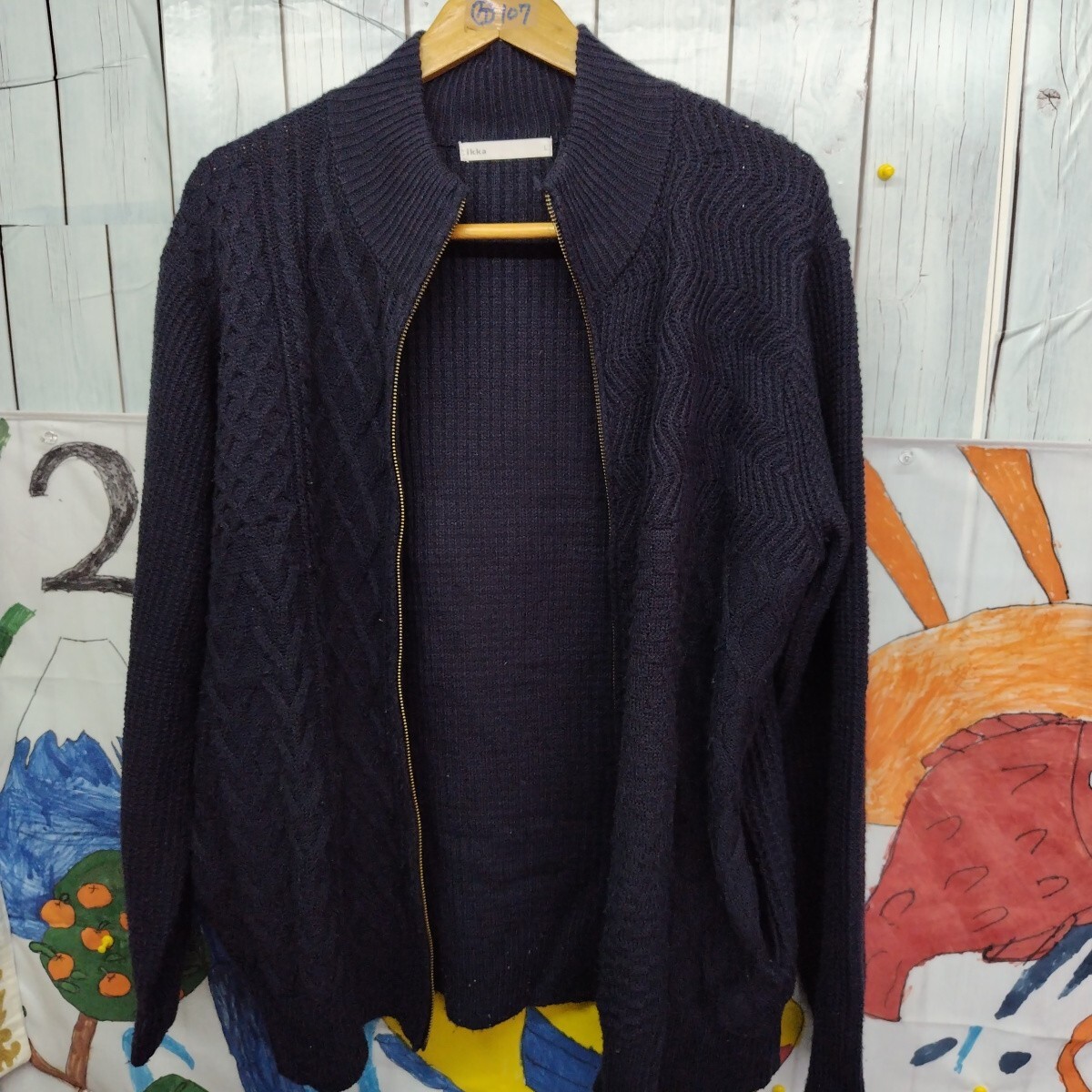 ikka メンズLサイズ ネイビー ニット カーディガン  ジップアップけ107