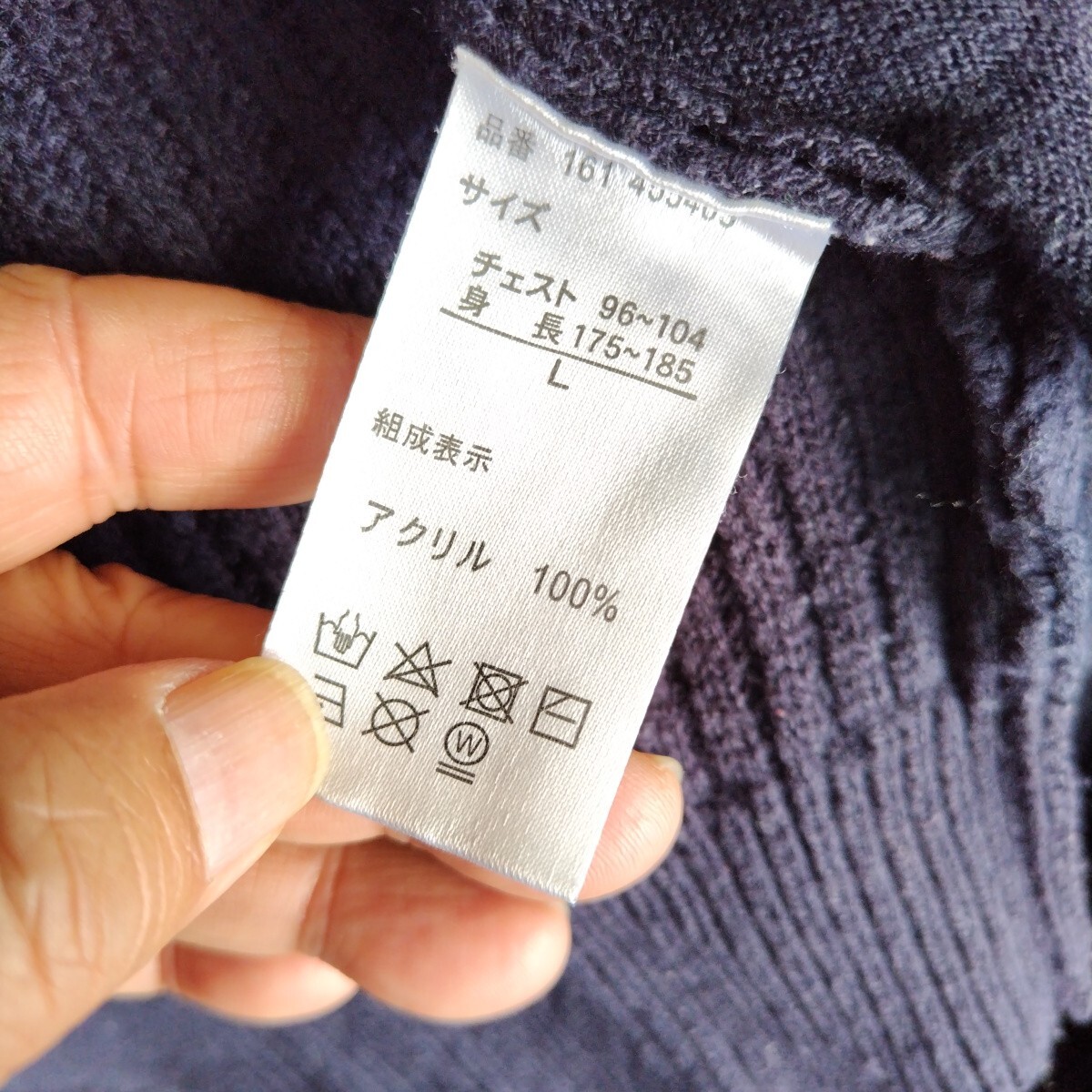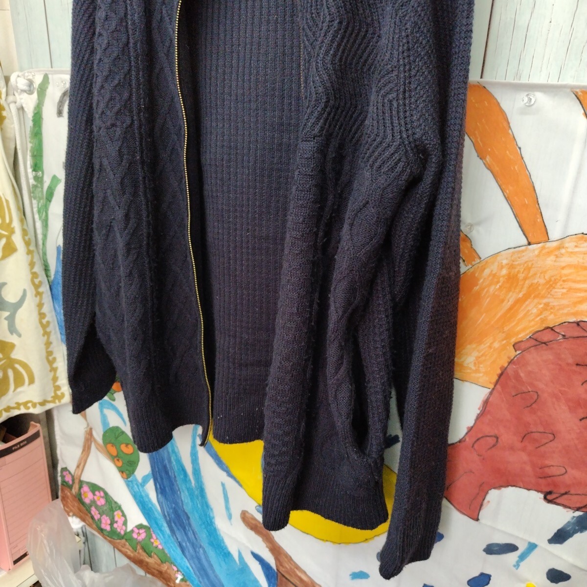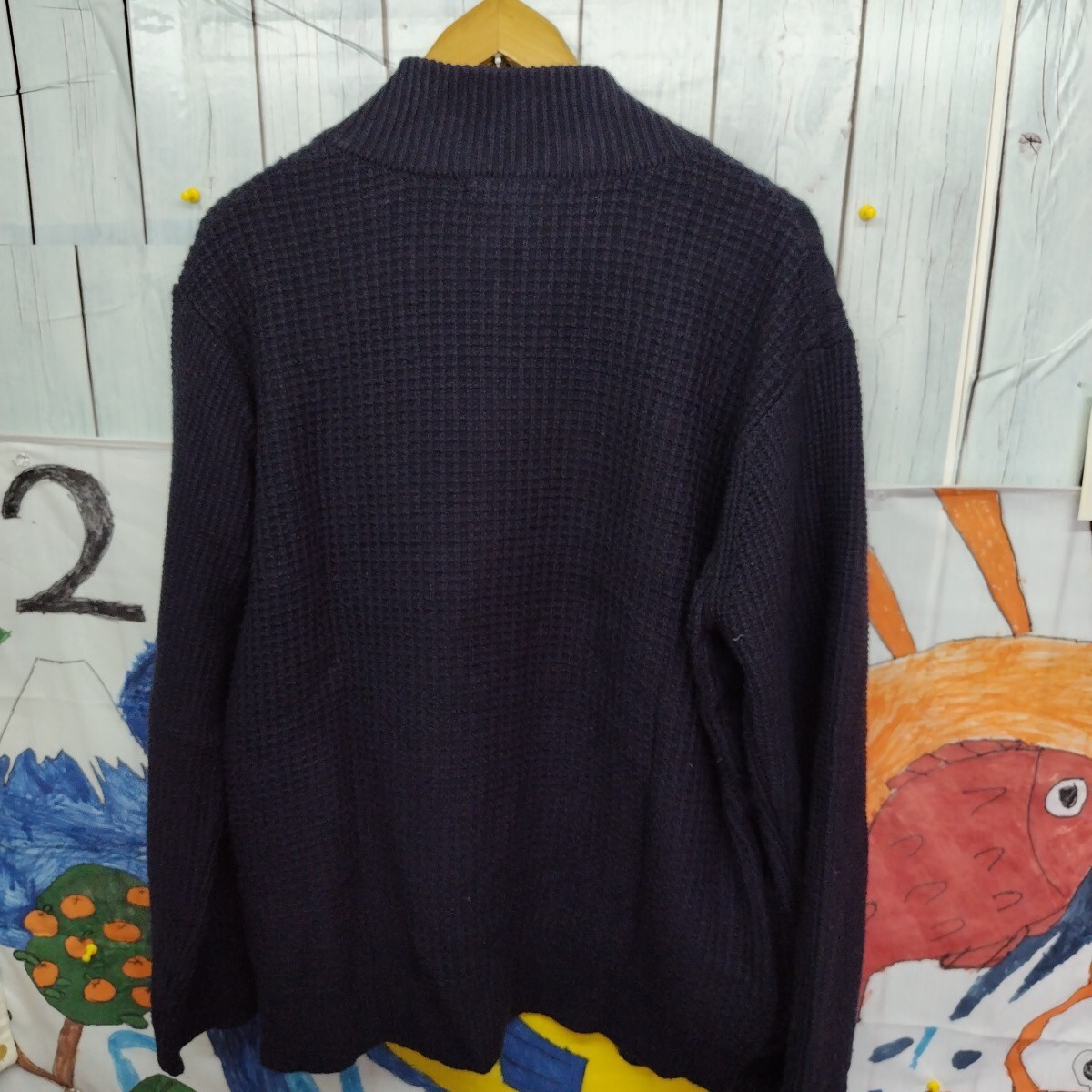 ikka メンズLサイズ ネイビー ニット カーディガン  ジップアップけ107